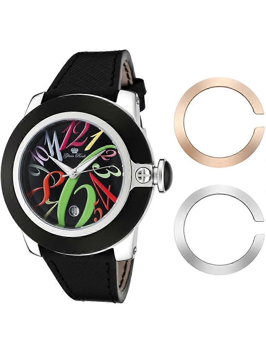Glam Rock Svart Äkta Läder Eller Läderimitation GR32018 Damklocka