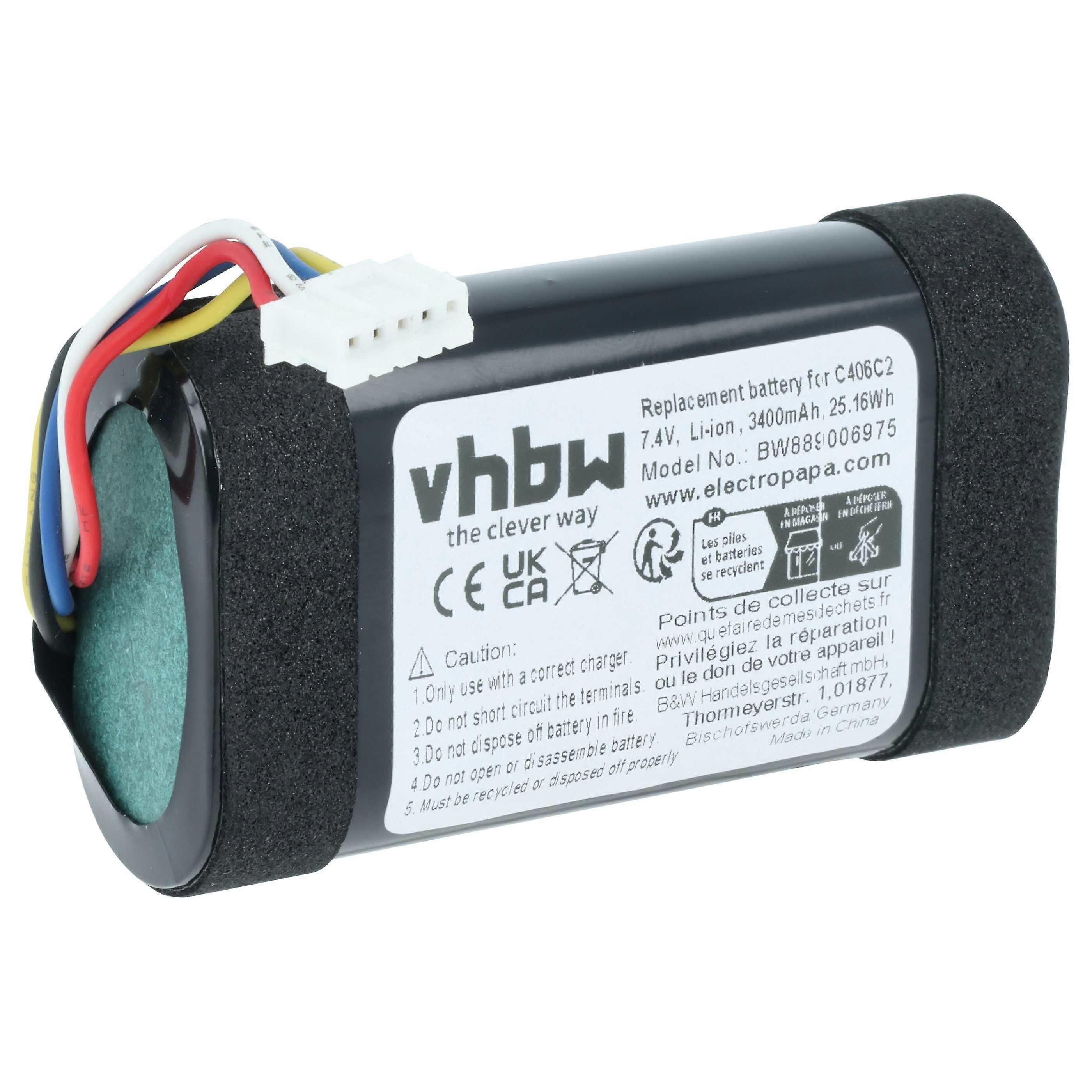 vhbw Akku Ersatz für Bang & Olufsen C406C2 für Lautsprecher Boxen Speaker (3400 mAh, 7,4 V, Li-Ion)