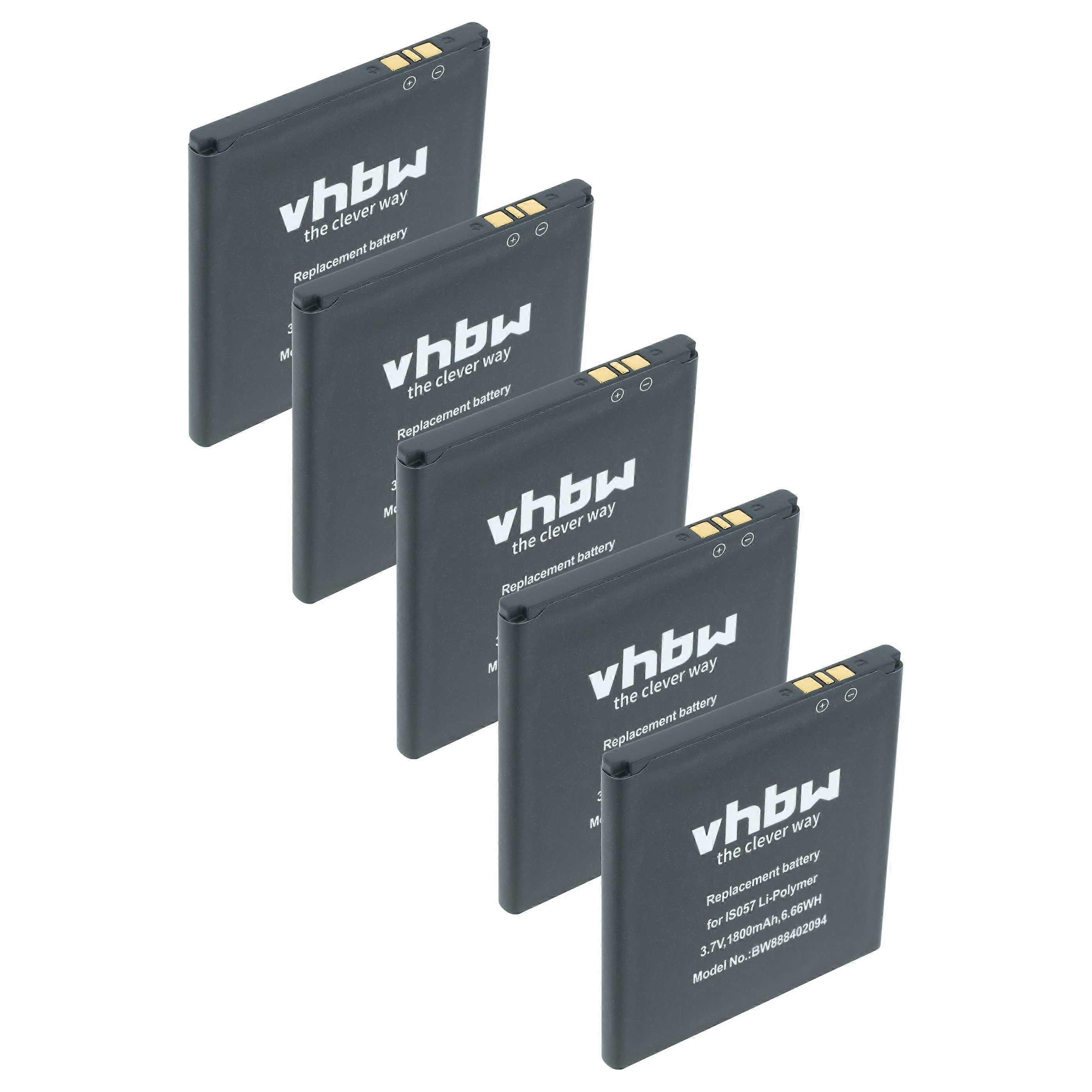 vhbw 5x Akku Ersatz für Pax IS057 für Barcodescanner POS (1800 mAh, 3,7 V, Li-Polymer)