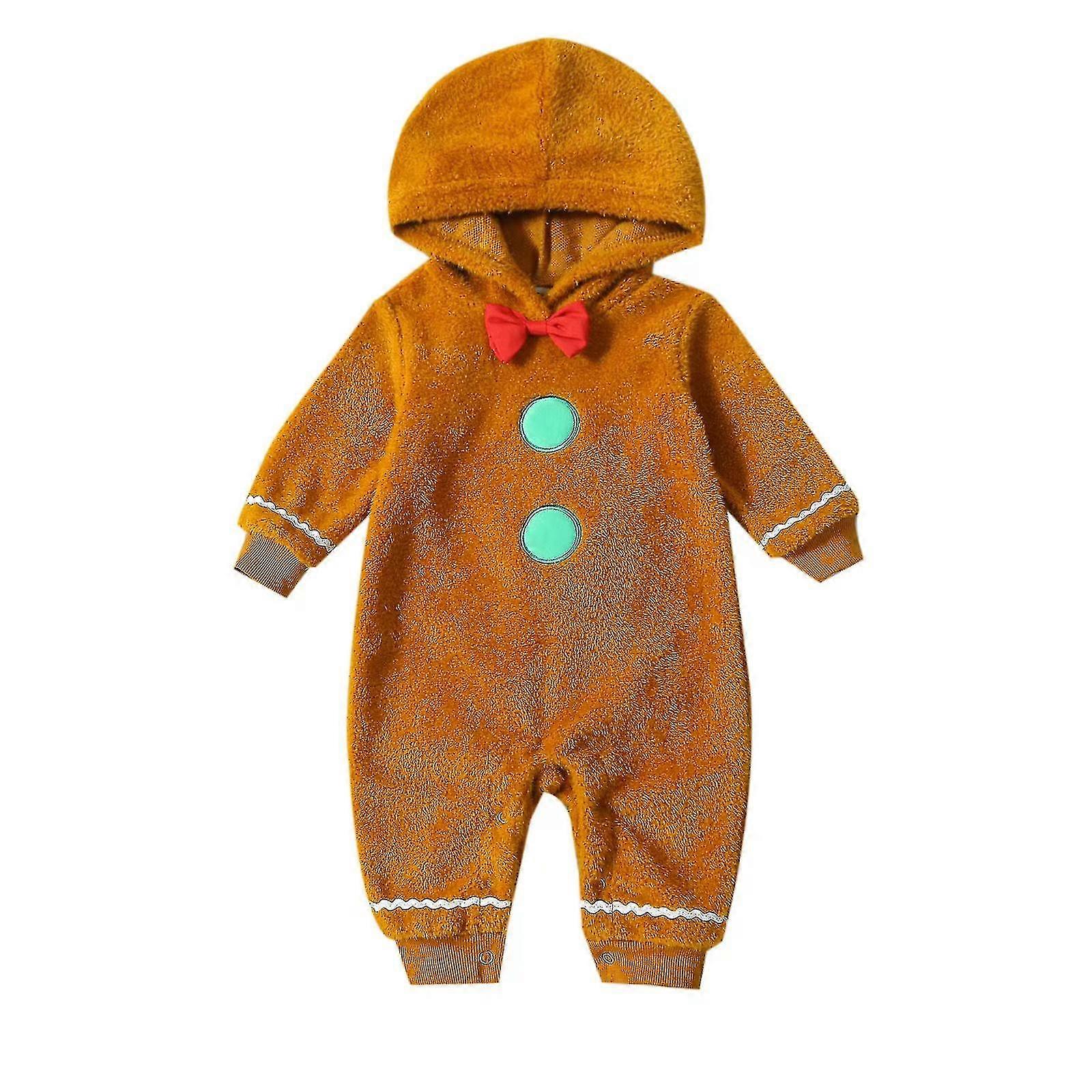 0-2 Years Baby Christmas Onesies Fuzzy Jumpsuit Gingerbread Man Cute Hooded Romper Girl Boy Clothes
