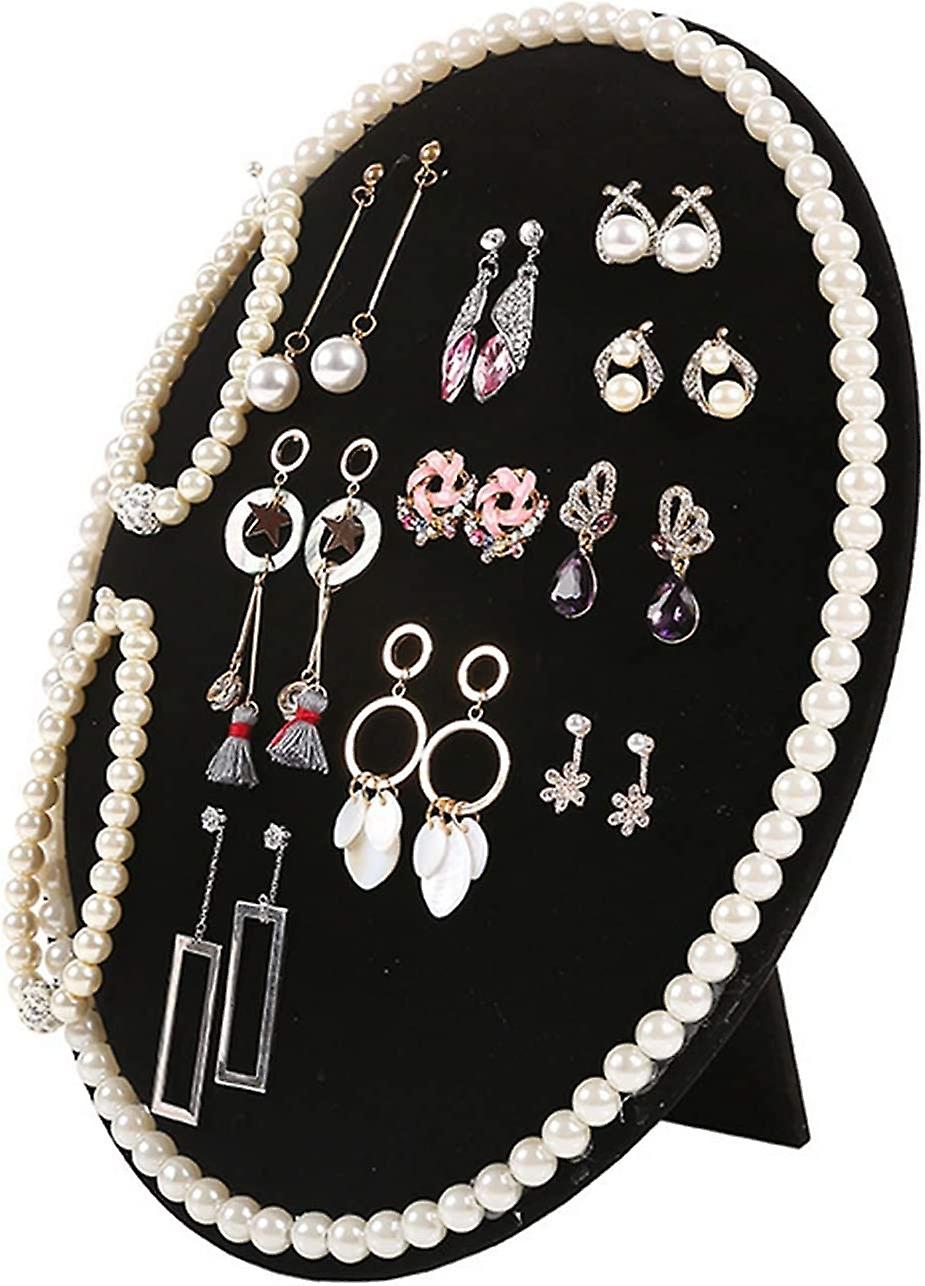 1 Pack Oval Sponge Mat Earrings Display Stand Display Board with Insert Bracket (Black)