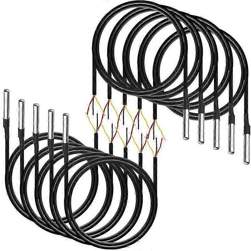 10Pcs Waterproof DS18B20 Temperature Sensor, Digital Temperature Thermal Cable Temperature (-55℃- +1