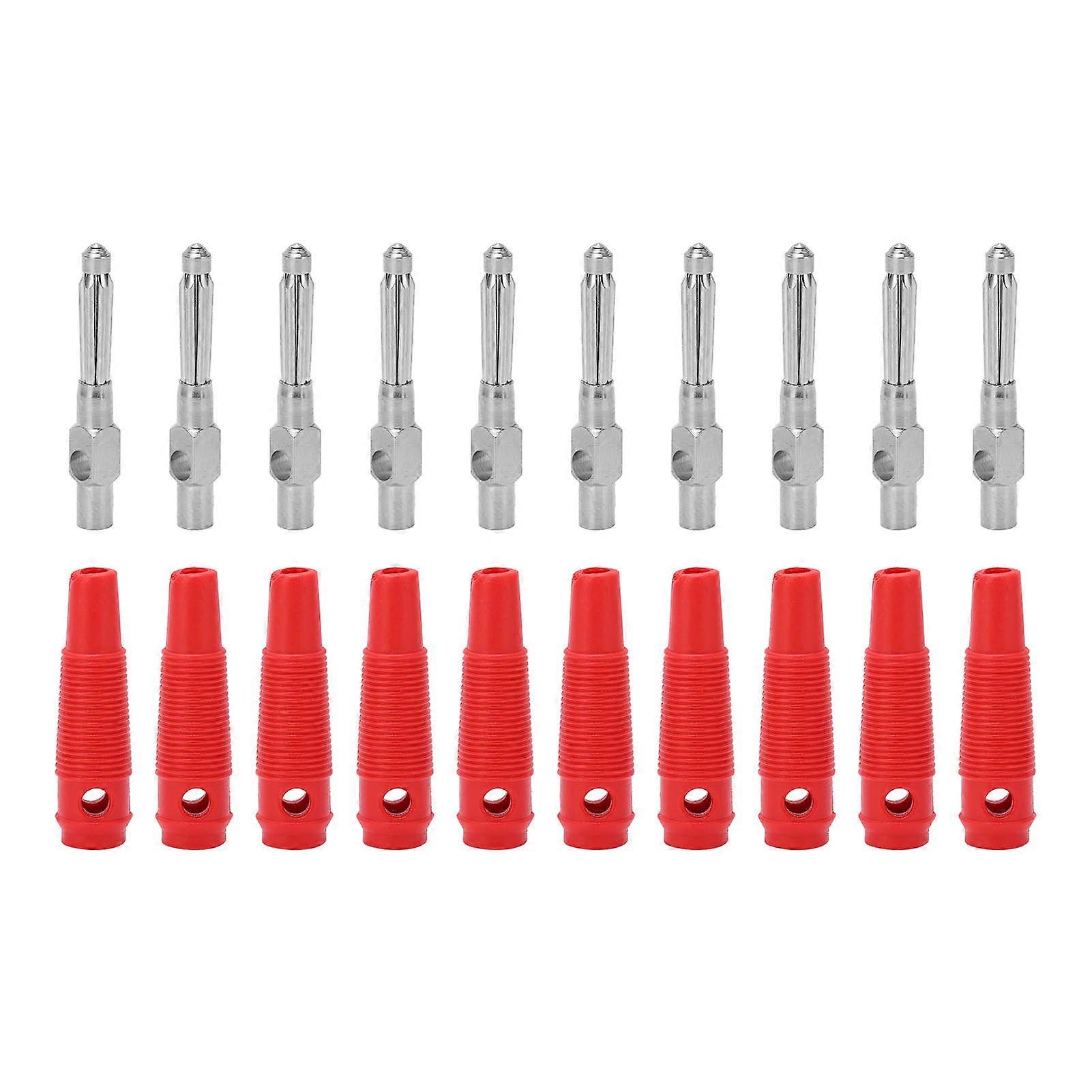 10Pcs 4mm 7Pin Banana Plug Copper 1000V 32A Stackable Male Plugs with Soft Sleeve Screw TightRed