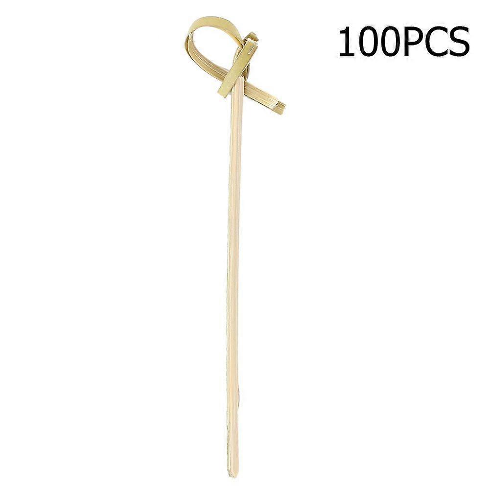 100Pcs Disposable Bamboo Toothpicks Cocktail Sticks with Knotted Decoration(12cm)