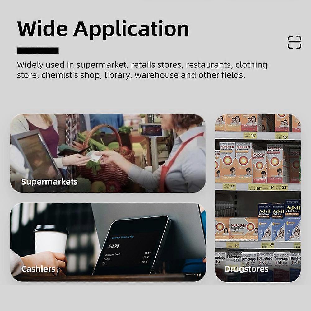 Features 1、▶ Strong Decoding Capacity of 1D/2D/QR Codes: This scanner support screen scan, easily capture bar codes 1D, 2D QR code on labels, paper, and mobile phone or computer displays, sensitive and accurately. Even includes some distortion codes, damaged codes, blurred codes, colorful codes. 2、▶ Portable desktop hands-free design, improve the working efficiency. Super fast and sensitive decoding speed, make the mobile payment more easily. 3 scanning mode to choose - Omni-induction trigger, manual, continuous. 3、▶ Adopting global exposure with fast image decoding and high-precision reading ability, efficient resistance to ambient light interference, multi-function scanning, fast scanning speed, powerful reading performance and high accuracy. Design with 20cm long scanning distance and tile angle, easy to scan the barcode. 4、▶ Plug and play, no need for any driver or software. Our desktop barcode scanner supports direct connection to your laptop, PC, POS via USB cable. In addition, the scanning window that can be tilted up or down freely, no need to have to worry about irritating your eyes. 5、▶ Widely used in supermarket, retails stores, restaurants, clothing store, chemist/u0027s shop, library, warehouse and other fields. Specification Features: ▶ Strong Decoding Capacity of 1D/2D/QR Codes: This scanner support screen scan, easily capture bar codes 1D, 2D QR code on labels, paper, and mobile phone or computer displays, sensitive and accurately. Even includes some distortion codes, damaged codes, blurred codes, colorful codes. ▶ Portable desktop hands-free design, improve the working efficiency. Super fast and sensitive decoding speed, make the mobile payment more easily. 3 scanning mode to choose - Omni-induction trigger, manual, continuous. ▶ Adopting global exposure with fast image decoding and high-precision reading ability, efficient resistance to ambient light interference, multi-function scanning, fast scanning speed, powerful reading performance and high accuracy. Design with 20cm long scanning distance and tile angle, easy to scan the barcode. ▶ Plug and play, no need for any driver or software. Our desktop barcode scanner supports direct connection to your laptop, PC, POS via USB cable. In addition, the scanning window that can be tilted up or down freely, no need to have to worry about irritating your eyes. ▶ Widely used in supermarket, retails stores, restaurants, clothing store, chemist's shop, library, warehouse and other fields. Specification: Model: X3-800 Color: White, Black (Optional) Code reading mode: CMOS (Global Exposure) Pixels: 640x480 Light source: 617nm red LED Scan Mode: Omni-induction trigger /manual/continuous Minimum resolution: 0.127mm(5mil) @Code 39, PCS=90% Usage environment: 0°C-50°C Storage Temperature: -20℃~+70℃ Storage humidity: 5%-95% non-condensing Ambient lighting: 0~8,600Lux (fluorescent)0~100,000Lux(daylight) Input voltage: 5VDC±10% Operating current: 175mA typical Depth of Field Angle: 30° V x 48° H (vertical) Field of view: 48° (H) x 30° (V) Interface support: USB Dimensions: 164mm×106mm×84mm Product Weight: 348g (excluding packaging and accessories). Cable Standards: Straight line: 1 .8m Color: Black, White (Optional) Material: ABS+PC Sealing class: IP54 Drop height: 1.5m Decoding capability: 1D: EAN13, EAN8, UPCA, UPC-E0, UPC-E1, Code128, Code39, Code93, Interleaved 2 of 5, Industrial 25, Matrix 2 of 5, Code11, CodaBar, MSI, RSS 2D: QR, Data Matrix (DM), PDF417, supports mobile phone screen reading Package Size: 19.5x13.4x10.9cm/7.6x5.2x4.2in Package Weight: 460g/16.2oz Packing List: 1 x 2D Barcode Scanner 1 x USB Cable Package List 1 x 2D Barcode Scanner 1 x USB Cable