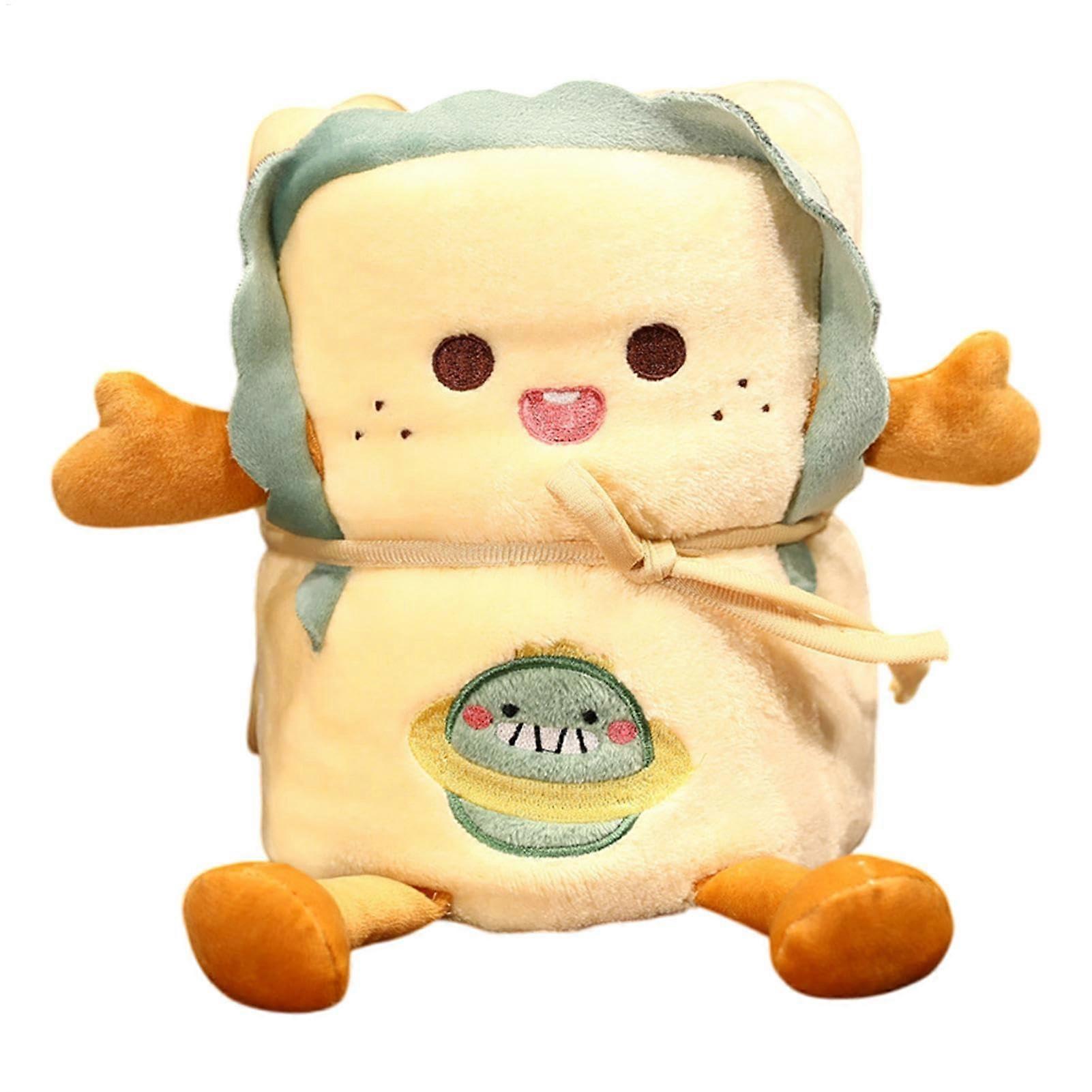 2-in-1 Pillow and Plush Blanket for Kids, Portable Warm Toast Throw Bedcover, 35.43 x 45.28 Inches Dinosaur Design, Lightweight and Washable