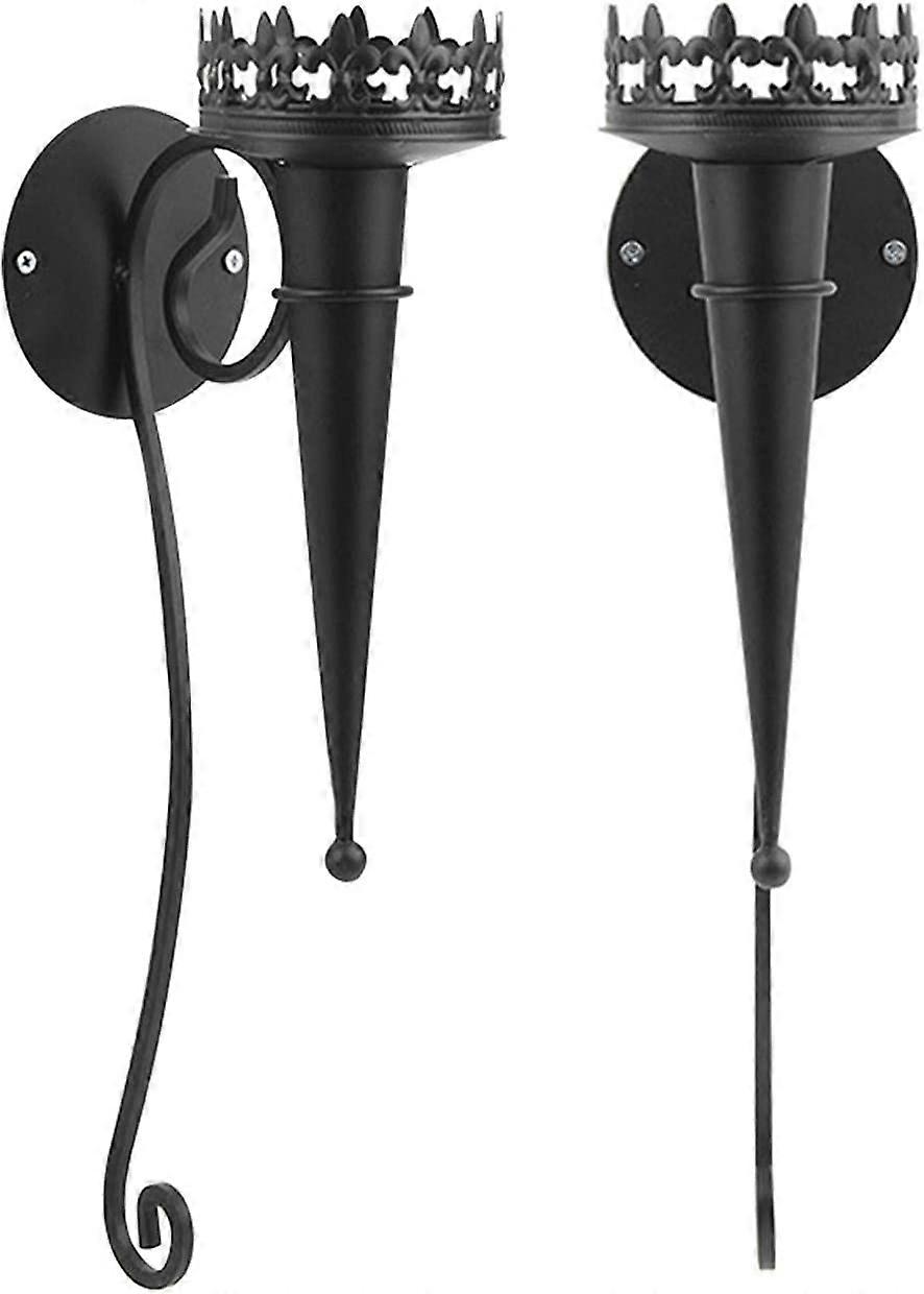 Wall Mounted Candle Sconces Set of 2 Iron Vintage Torch Design Hanging Wall Mounted Decorative Candle Holder, Candleholders Candlestick Holder for Home Decorations(black) Colour Black Material Iron Finish type Matte Finish Mounting type Wall Mount Material: Wrought iron candle holder made of iron with matte finish. Durable: Simple and convenient daily maintenance, durable and very sturdy. Design: The torch shape design is beautiful, very suitable for home decoration. Occasion: Very suitable for daily use, home, terrace, porch, dining room, apartment, bathroom, bedroom and living room. Gift: This amazing set can be matched with a variety of decoration styles from retro to rustic. It is a great gift for anyone who is passionate about home decoration.