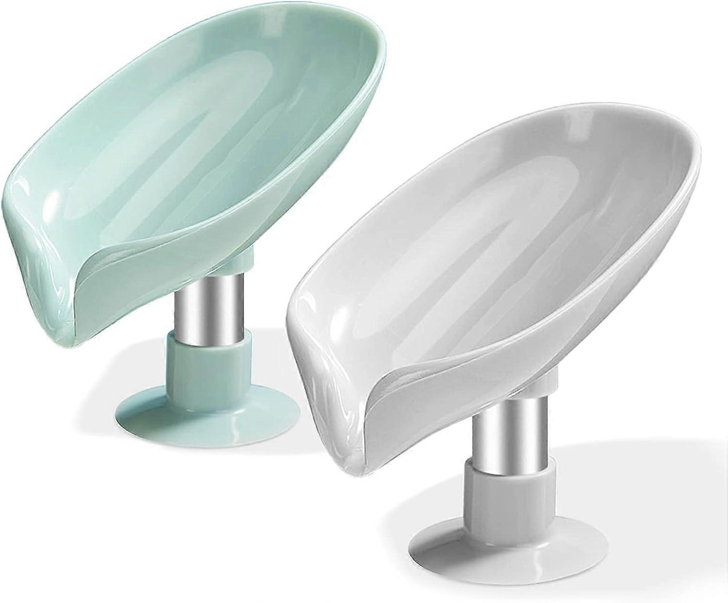 2 Pcs Soap Dishes with Drainage - Leaf Shape Soap Tray - Suctions Soap Dish