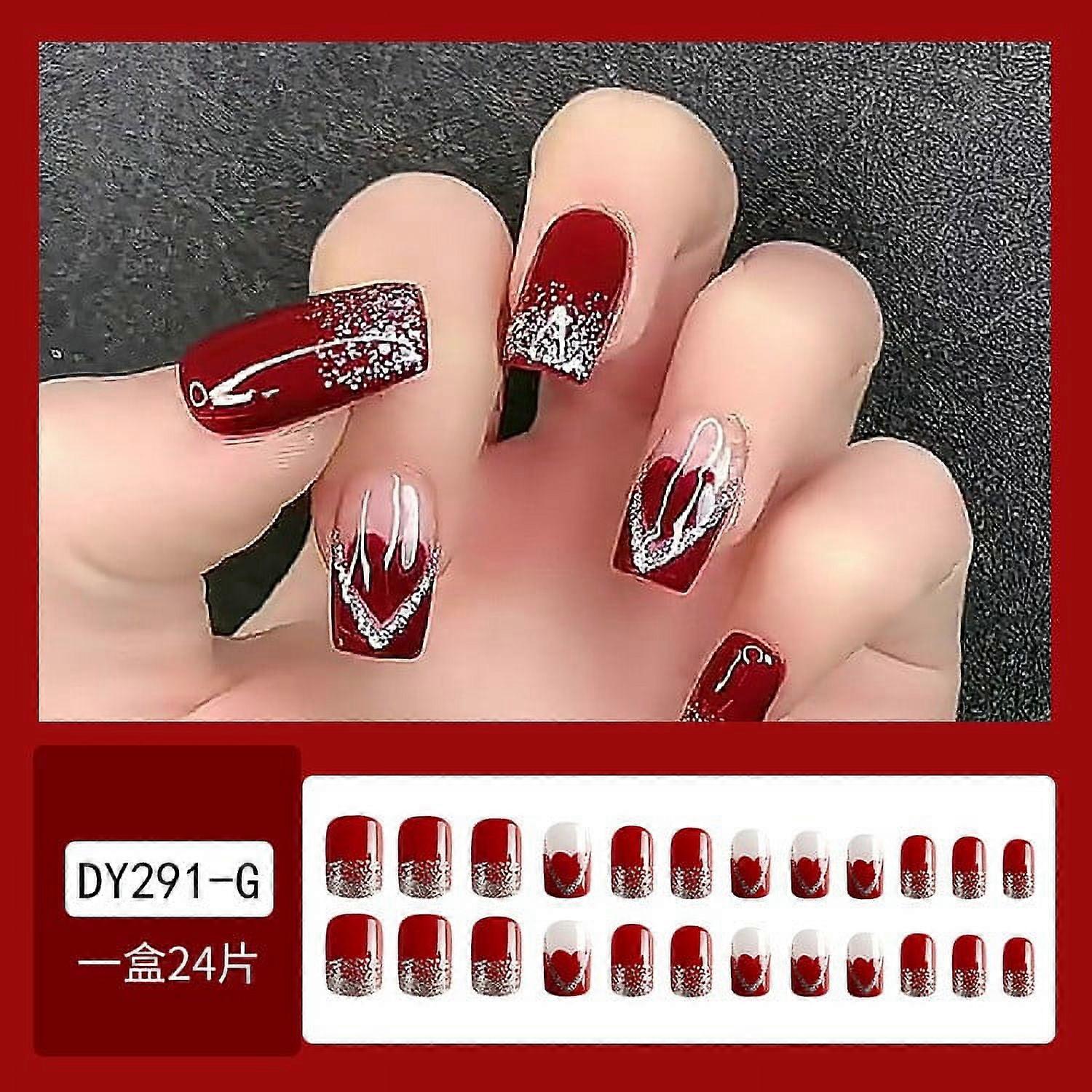 2024 Home Clearance!24 Pieces Short False Nails Press-on Nails Glitter Manicure Nail Patches 10ml