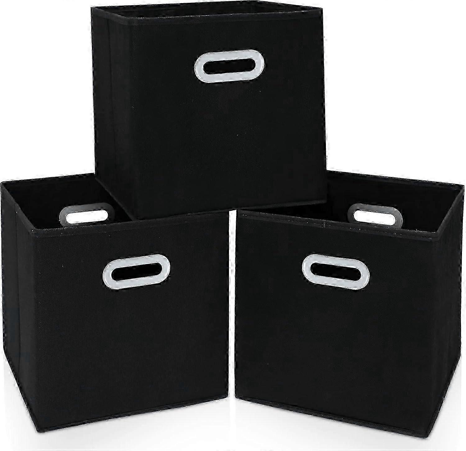 2025 Fabric Cloth Storage Bins,Fabric Cube Organizer with Dual Handles Foldable Cube Storage Baskets for Home Bedroom Storage,Set of 3, Black