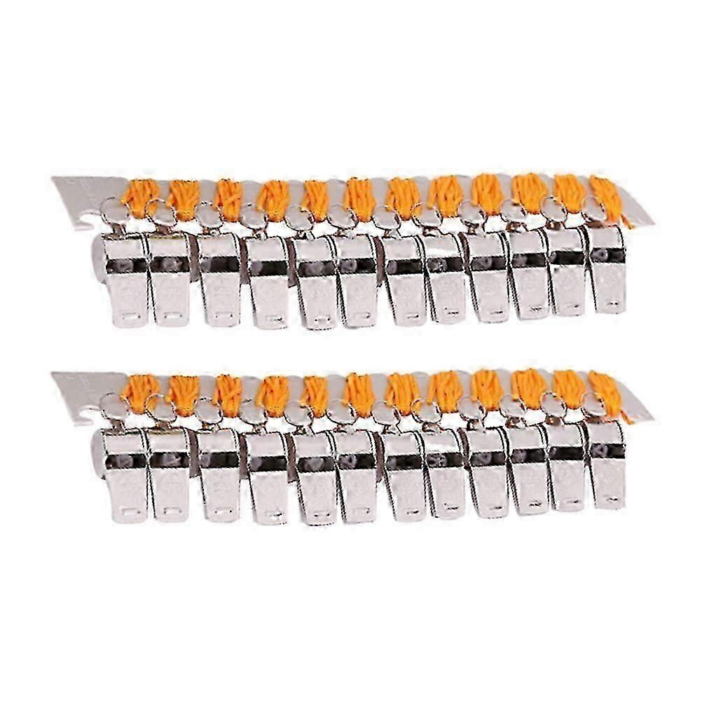Description This is a set of metal party whistle with lanyard. The product is designed to be simple, ingenious and easy to blow. You can use it to make sounds to cheer parties. Such funny toys with whistle sound will add more pleasure to your gatherings. Perfect to use in Christmas, wedding, birthday parties, competition etc. Features - Color: as shown.- Material: metal.- Size: About 4.5x1.8x2cm.- Made of good-quality metal material, safe to use.- Funny cheering props and party favors for kids, easy to use, bring out laugh and joy.- Makes noise when blown into, funny and attractive.- Whistle noise makers, can light up the festive and excited party time.- Perfect for birthday, Halloween, wedding, carnival, holiday parties, sports events, etc.Packing list: 24 x party whistles