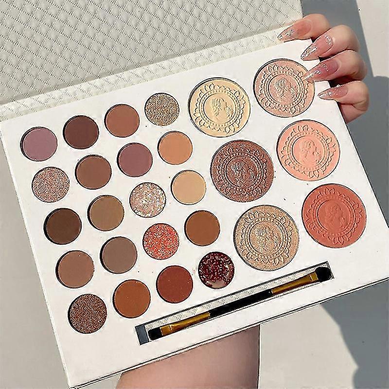 26 Colors Eyeshadow Palette - Matte Glitter Metallic Eye Shadow with Highlighter Blush Bronzer and Makeup Brush