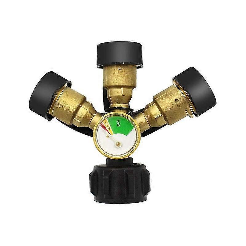 3 Way Propane Splitter with Gauge and Shut-Off Valve, 3 Y Propane Splitter, Propane LP Tank Tee Gau