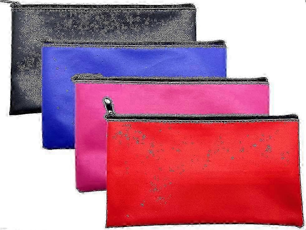 4 Colors Bank Deposit Money Bag Pouch, Utility Leatherettevinyl Zipper Wallet Gift