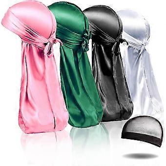 4 stks silky durags, zijde durag voor mannen vrouwen golven, zijde durag pack met 1 wave cap, zijdeachtige satijn durag extra lange staarten