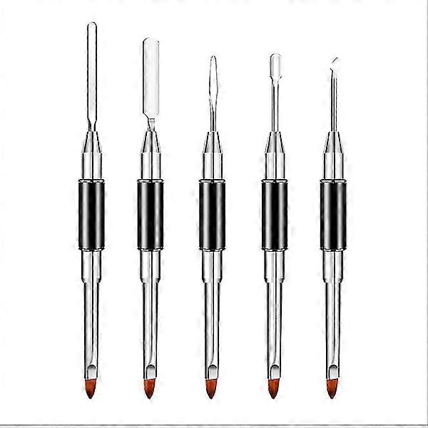 5 Pcs Dual-Ended Poly Nail Gel Brush & Picker 2 in 1 Design Nail Pusher Peeler Scraper