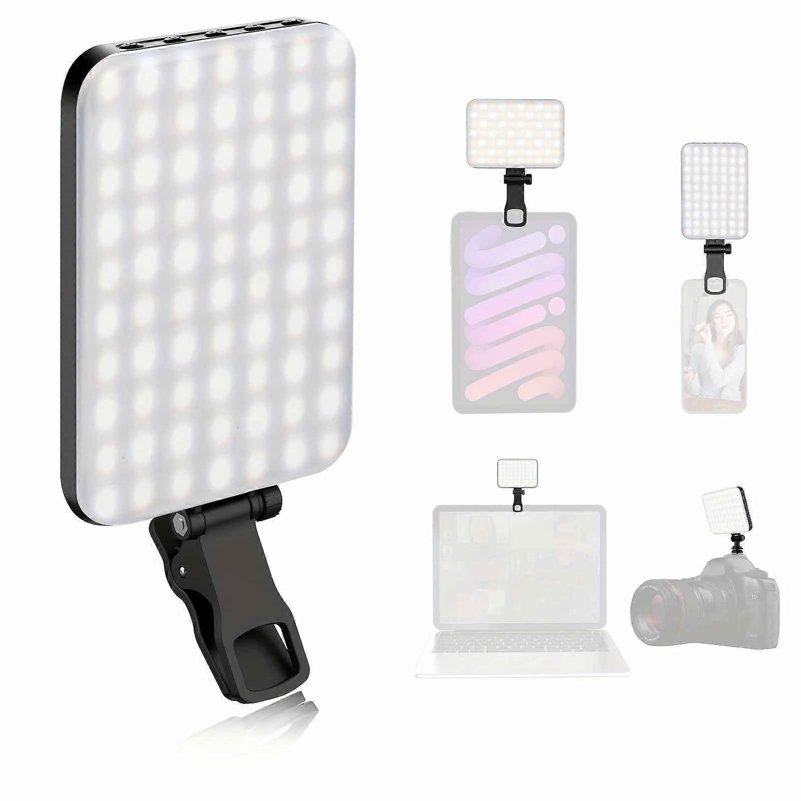 60 LED Portable Selfie Light with Clip & Tripod, 2200mAh Rechargeable, 3 Modes, CRI 97+, compatible with IPhone Webcam for Streaming, Laptop, Makeup