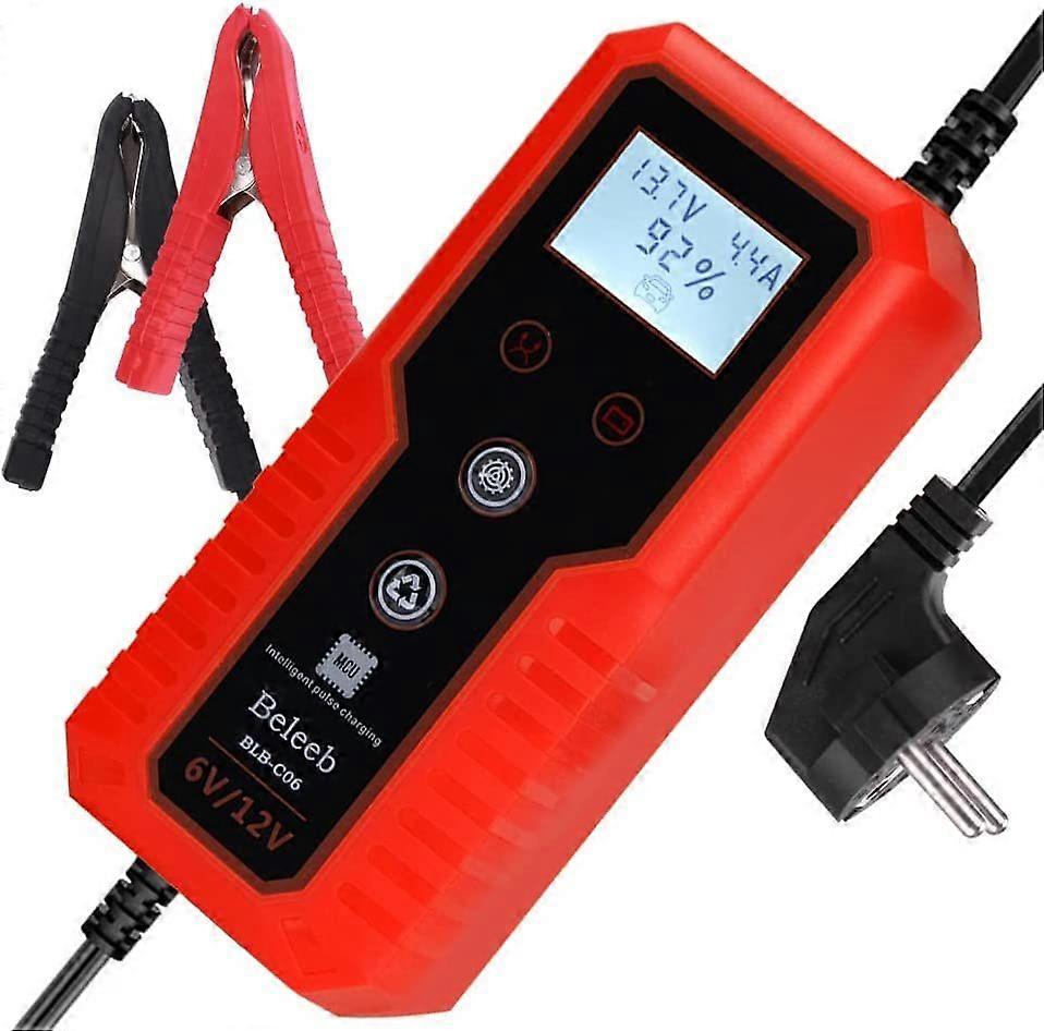 Car Battery Charger Trickle Charger Float Battery Charger and Maintainer 6V 12V 6A for Motorcycle Car Boat Marine Lawn Mower ATV Toy Car (Red)