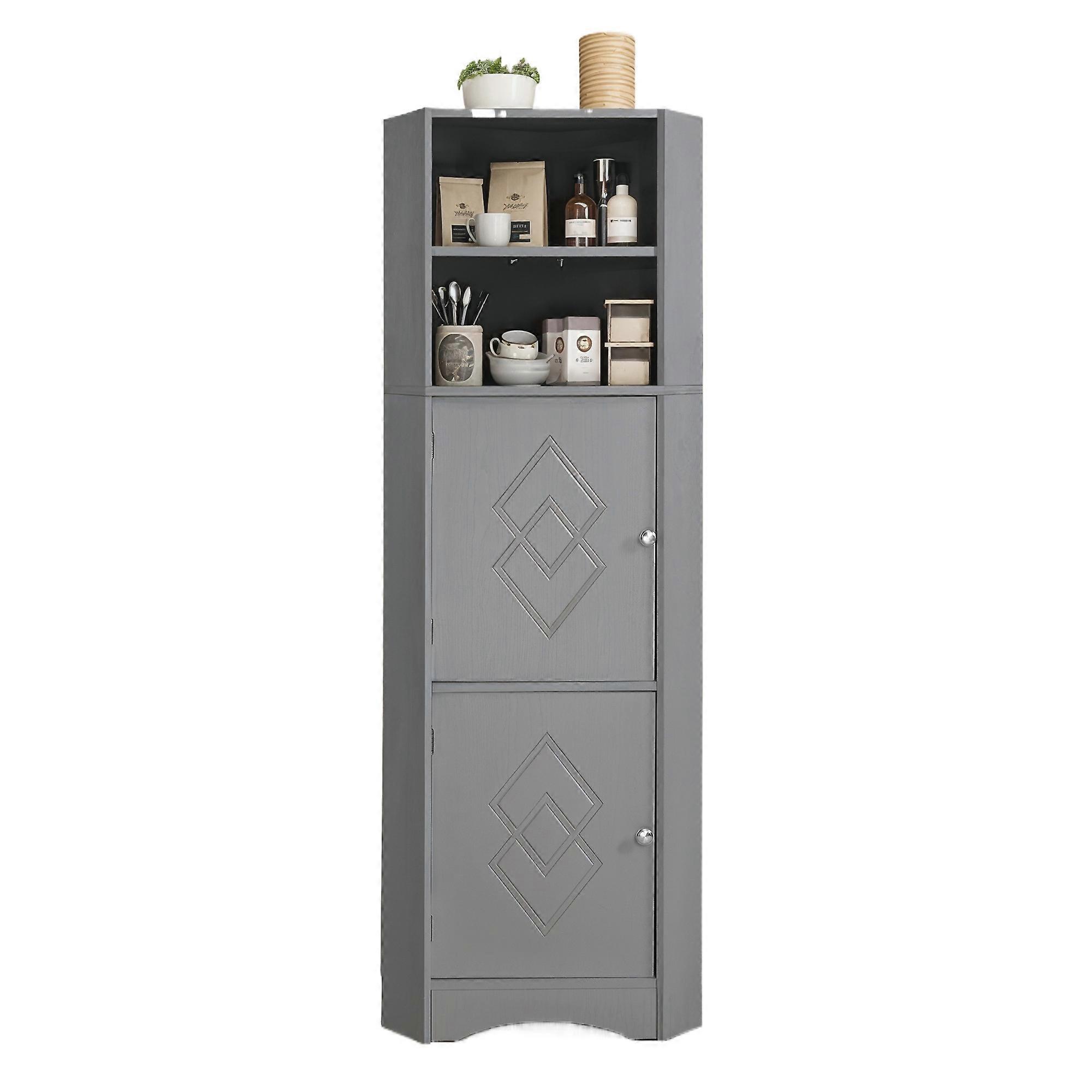 Bathroom Corner Cabinet Two Shelves Adjustable Open Storage Gray