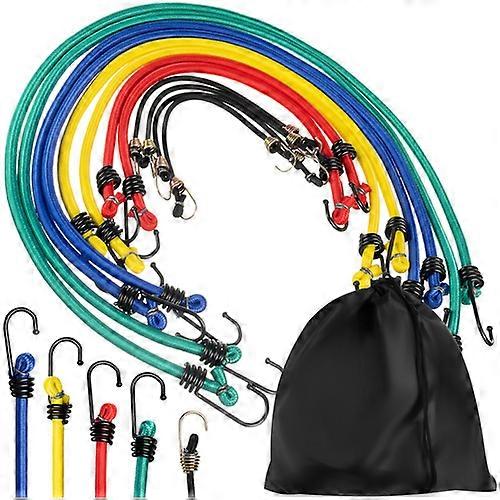 Elastiska linor i bagagegummi ger säker transport av dina tillhörigheter, vilket säkerställer stabilitet under resan. Detta set i 12 delar har slitstarkt latexgummi och korrosionsbeständiga krokar för långvarig användning. Inkluderar 12 elastiska snören i olika längder för mångsidiga monteringsalternativ. Levererar enkel förvaring med ett kompakt fodral med dragsko för snabb åtkomst. Passar alla laster, perfekt för bilar, cyklar och vagnar. Behåller elasticiteten även efter upprepad användning, vilket säkerställer tillförlitlighet. Har solida metallkrokar för snabb och säker fastsättning. Förbättra din reseupplevelse med dessa pålitliga elastiska gummilinor för bagage. Perfekt för camping, turism eller vardagsbruk, detta set är designat för bekvämlighet och hållbarhet. Hämta din idag Specifikationer Längd utan sträckning: Grön 88 cm, Blå 73 cm, Gul 58 cm, Röd 43 cm, Svart 23 cm Vikt: 0,546 kg (0,57 kg förpackat) Material: PP-belagd latex, järn, PP Färg: Flerfärgad