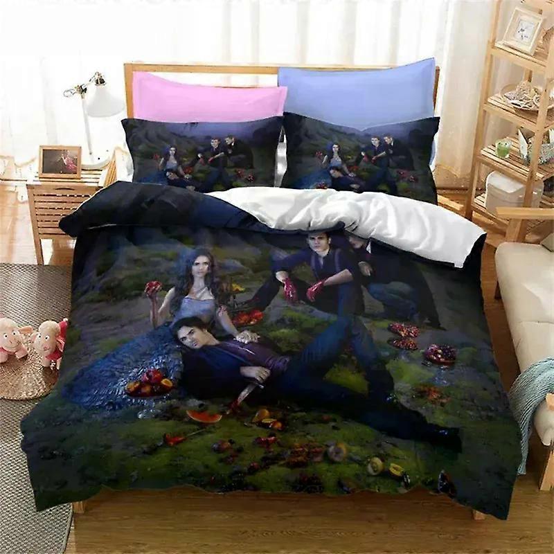 (bbyx159) The Vampire Diaries Print Bedding Set 3D Character Duvet Cover Set With Pillowcase Twin Full Queen King Bedclothes