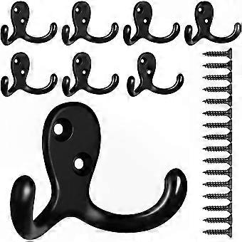 Black Wall Mounted Hooks Set of 8, Double Prong Heavy Duty Hooks with Screws for Coats and Bags