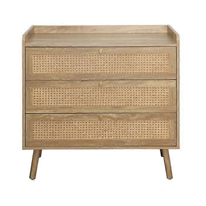 CALICOSY - 3-drawer commode with natural rattan fronts L80 cm - PALMO - Light wood