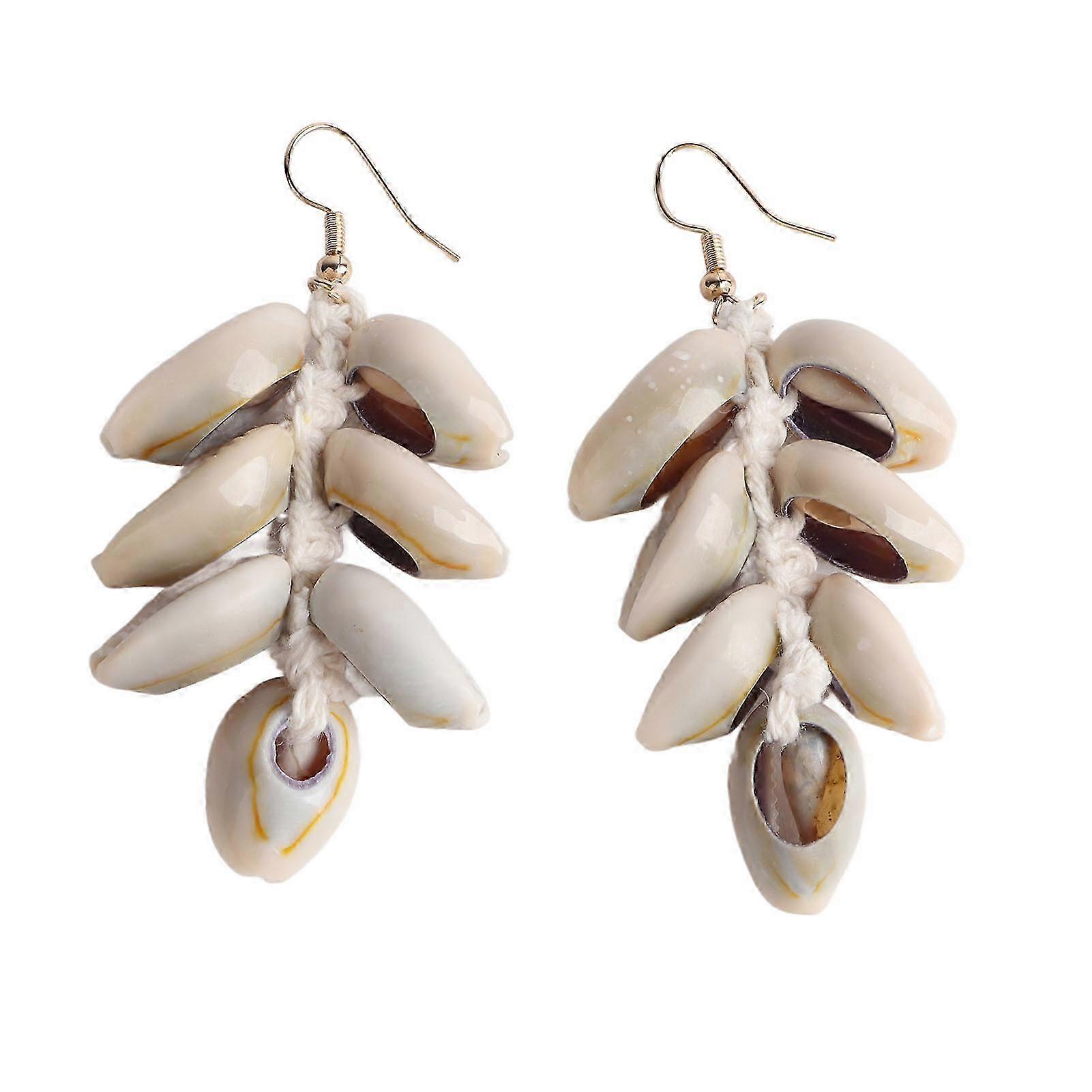 Conch Shell Boho Dangle Earrings Hand Woven for Women White