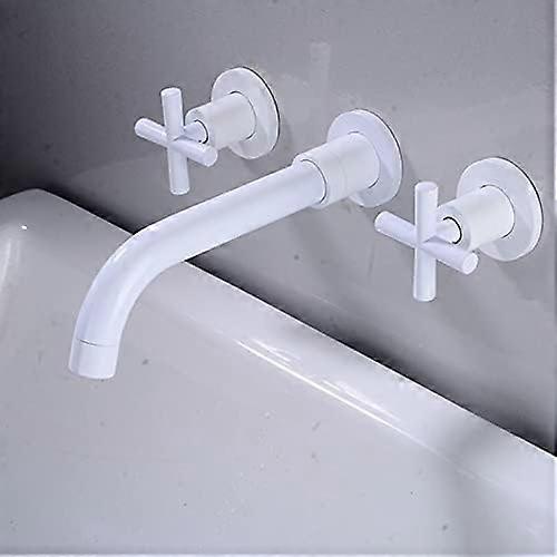 Copper Concea Bath Sink Taps Wall Mounted ThreeHole SplitType Basin Mixer, Hot Cold, Double Lever, Siamese White