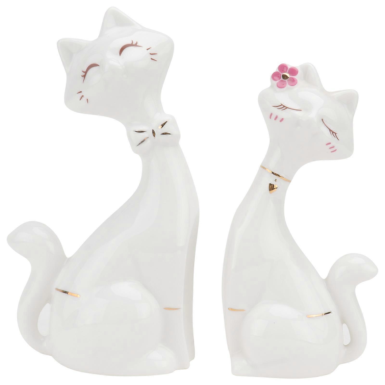 Delicate Ceramic Cat Decor Ceramic Crafts for Decoration 2Pcs