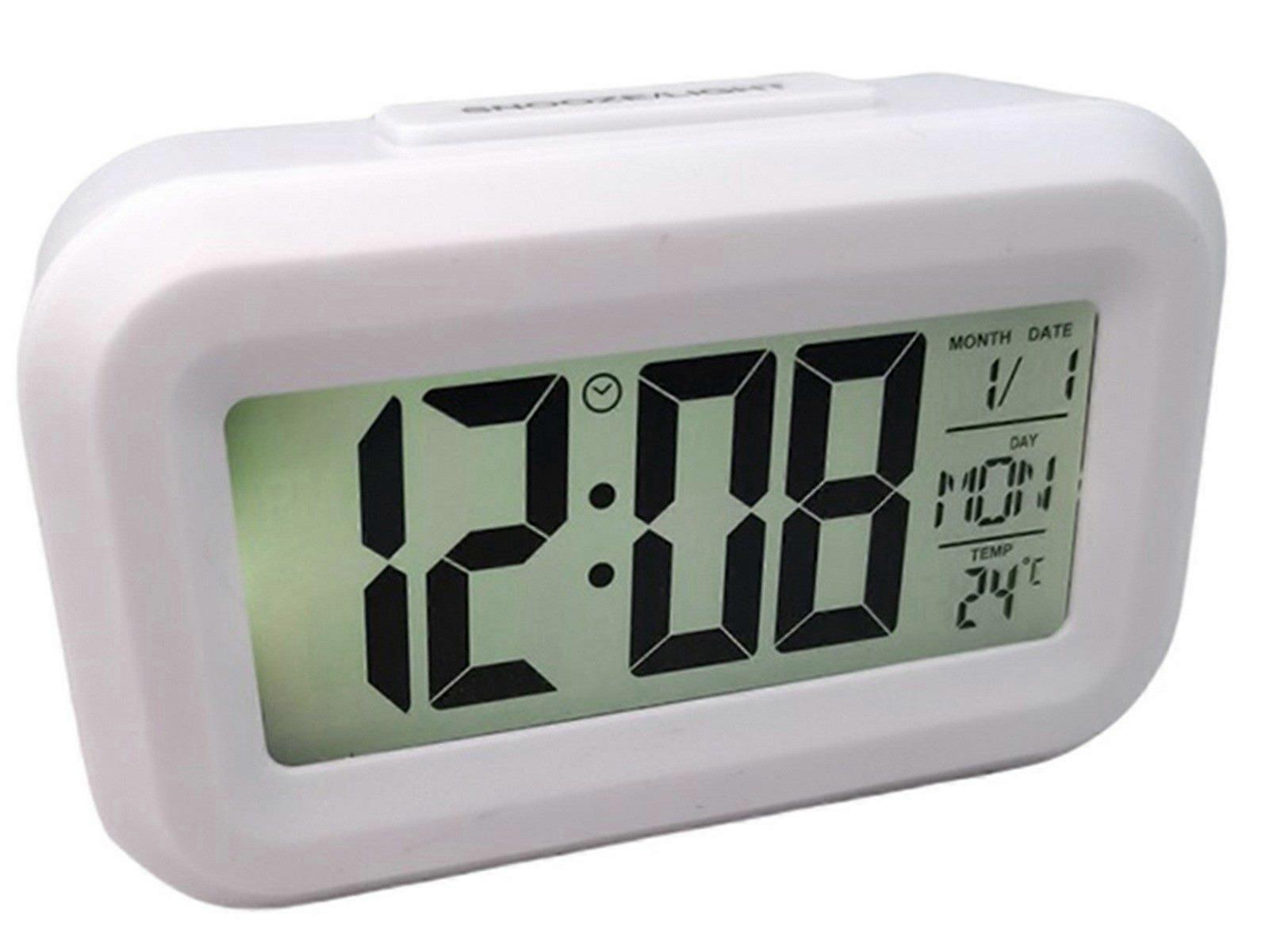 Digital Alarm Clock Thermometer Calendar Indoor Temperature Monitor White