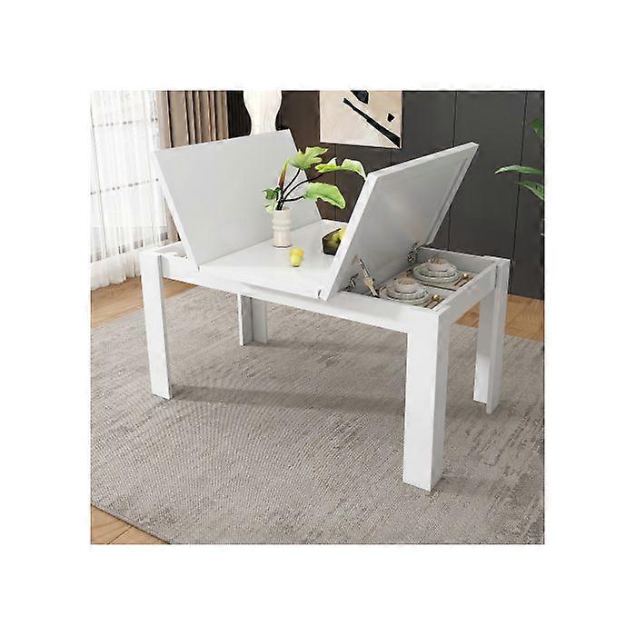 Dining table 120*70 cm, Open storage space, Space-saving, Multifunctional table, White
