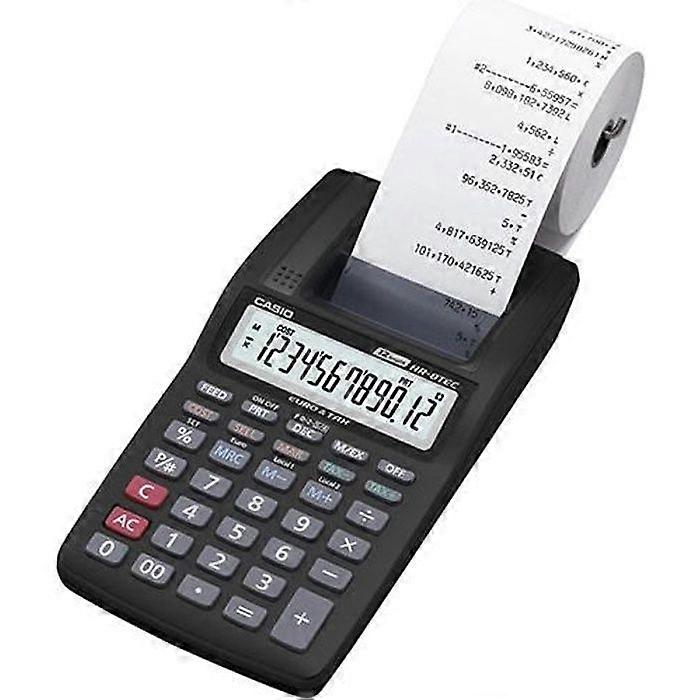 Portable Printing Calculator - CASIO - HR-8 RCE - Black - 12-digit LCD - 0.445 kg