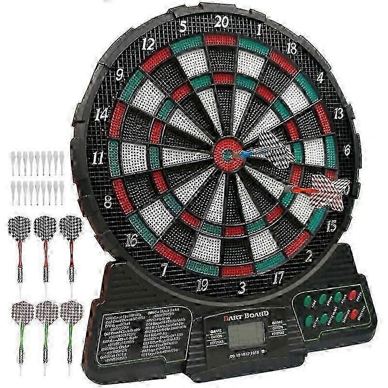 Package included: -1 x Electronic Dartboard -6 x Soft Tip Darts -18 x Replacement Tip -1 x User Manual< br /> ------------- 12Pcs Darts Sets: Specifications: Type: Darts Material: Steel (tips) + iron (barrels) + Aluminum alloy (shafts) + plastics (flights) Tip length: 25 mm / 1 in Shaft length: 48 mm / 1.89 in Barrel length: 44 mm / 1.73 in Total length: 153mm /6.02in Quantity: 12Pcs Weight (1PC Dart): 18g Total weight (darts): 226g Features: - The dartboard is a high quality dart kit designed with non-slip grooved barrels for excellent grip. - Non-slip knurled metal barrels, aluminum dart shafts, strong and durable and not easy to damage. - With a slim profile and medium weight to increase speed and reduce drag, they offer exceptional balance and optimal control. - Sleek and stylish, the set is an attractive gift choice for all your dart loving friends. - The accompanying carry The can will protect your set, keeping it in perfect condition. Package included: 12pcs darts with a transparent box ------------- Electronic dartboard + dart board: Features: 1.Includes 18 games with 159 variations and can accommodate up to 8 players, which is specially designed for playing games. 2.Designed with an 11.4" target face, the high-quality, durable segments provide an exceptionally durable playing surface. 3. The ultra-thin segment significantly reduces the amount of bounce, allowing for closer groupings of darts to maximize scoring. 4. A large missed dart catch ring protects your wall from errant throws. 5. The bright LCD screen offers automatic scoring, music and audio prompts, eliminating manual pointing. 18 plastic replacement tips, make it safe for all ages (suitable for children). 7. This electronic dartboard is powered by a 3 x 1.5V battery, making it suitable for outdoor use. 8. Ideal gift for Christmas or birthdays, fun for the whole family. Specifications: Product name: Electronic dartboard Material: ABS + PP Color: Multicolor < br /> Weight: 1.01 kg Size: 31*37*2.5cm / 12.2x14.6x1.0inch Target area: 9 inches Player: up to 8 Display: LED Displays Game: 18 games and 159 options Power supply: 3 AA batteries (not included) Package included: 1 x Electronic Dartboard 6 x Soft Tip Darts 18 x Replacement Tips 1 x User Manual