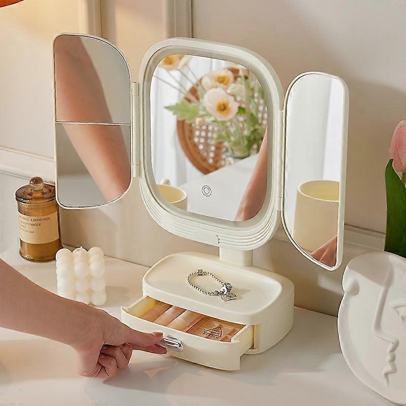 Elosung Milky White Led Lighted Tri Fold Makeup Mirror With Storage Drawer Magnification Usb Charging Port Makeup Mirrors