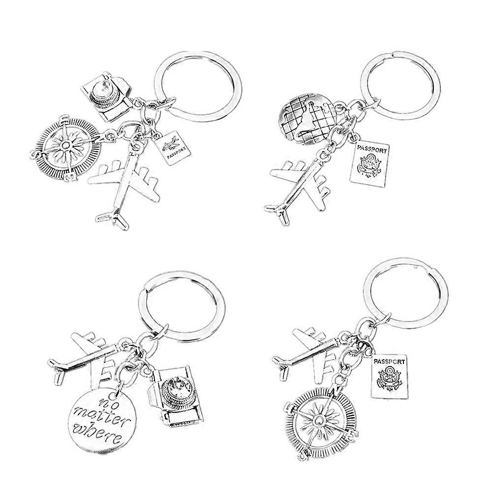 Aesthetic Keychain Compass Shape Stylish Travel Pendant Unisex Silver 8.5*3CM Alloy 4Pcs