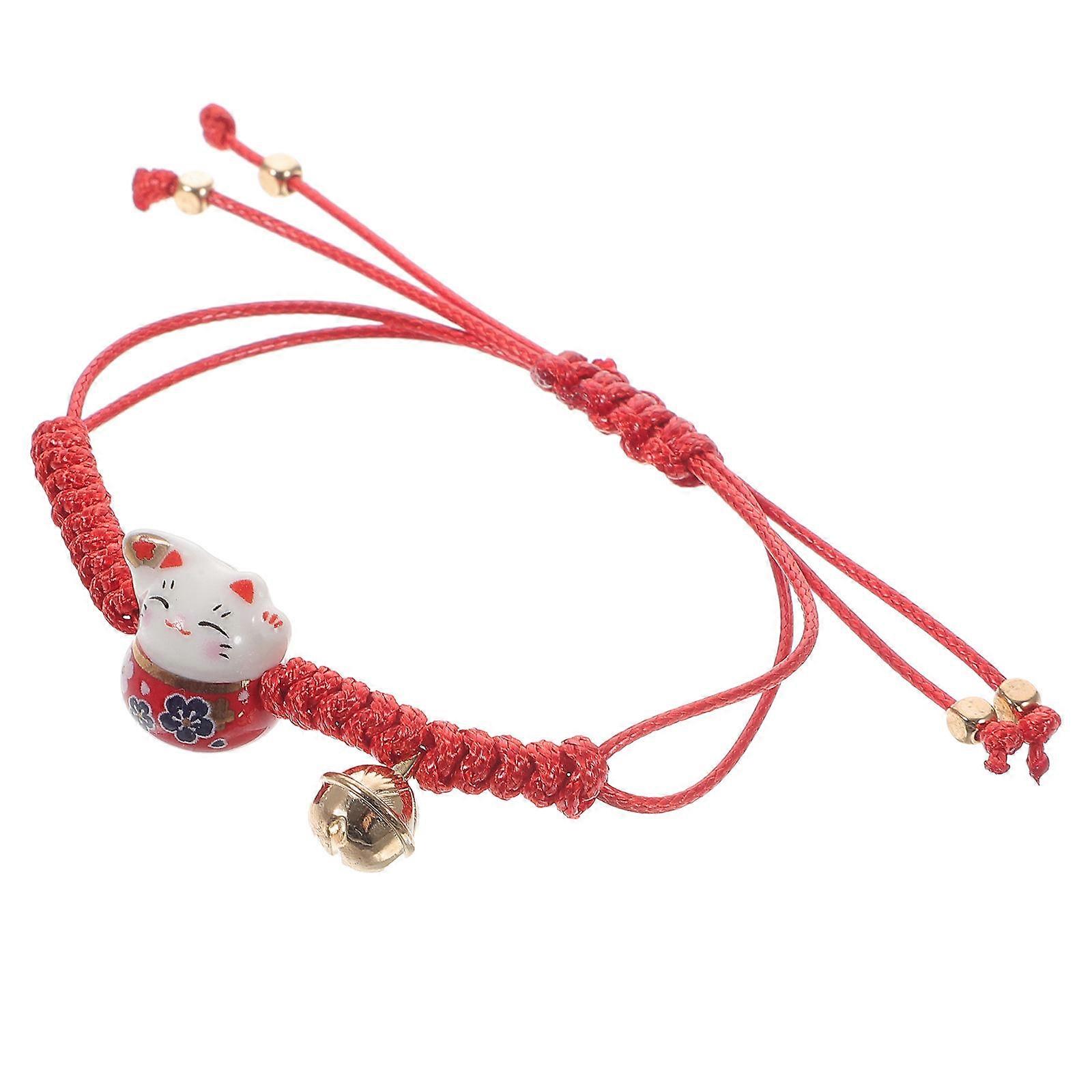 Fortune Cat String Bracelet Red Ceramic Bracelet for Wearing Adjustable