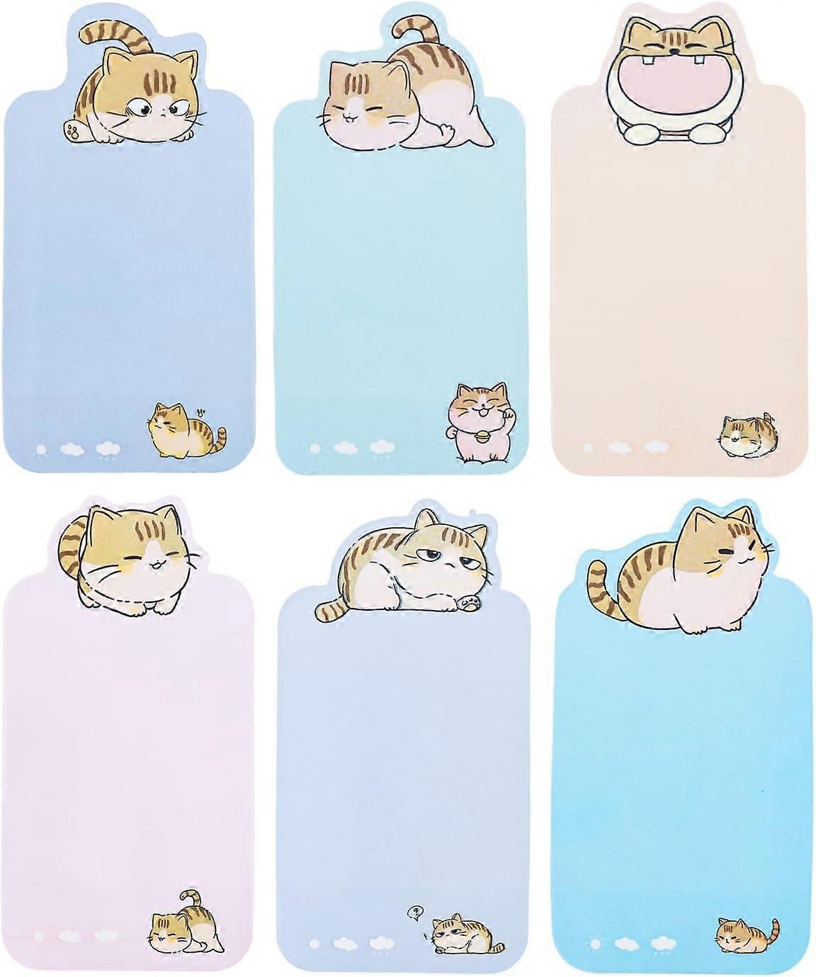 Funny cat sticky note set, cartoon cute cat sticky note, six self-adhesive note pads with labels, writing notes, suitable for cat lovers gifts, home s