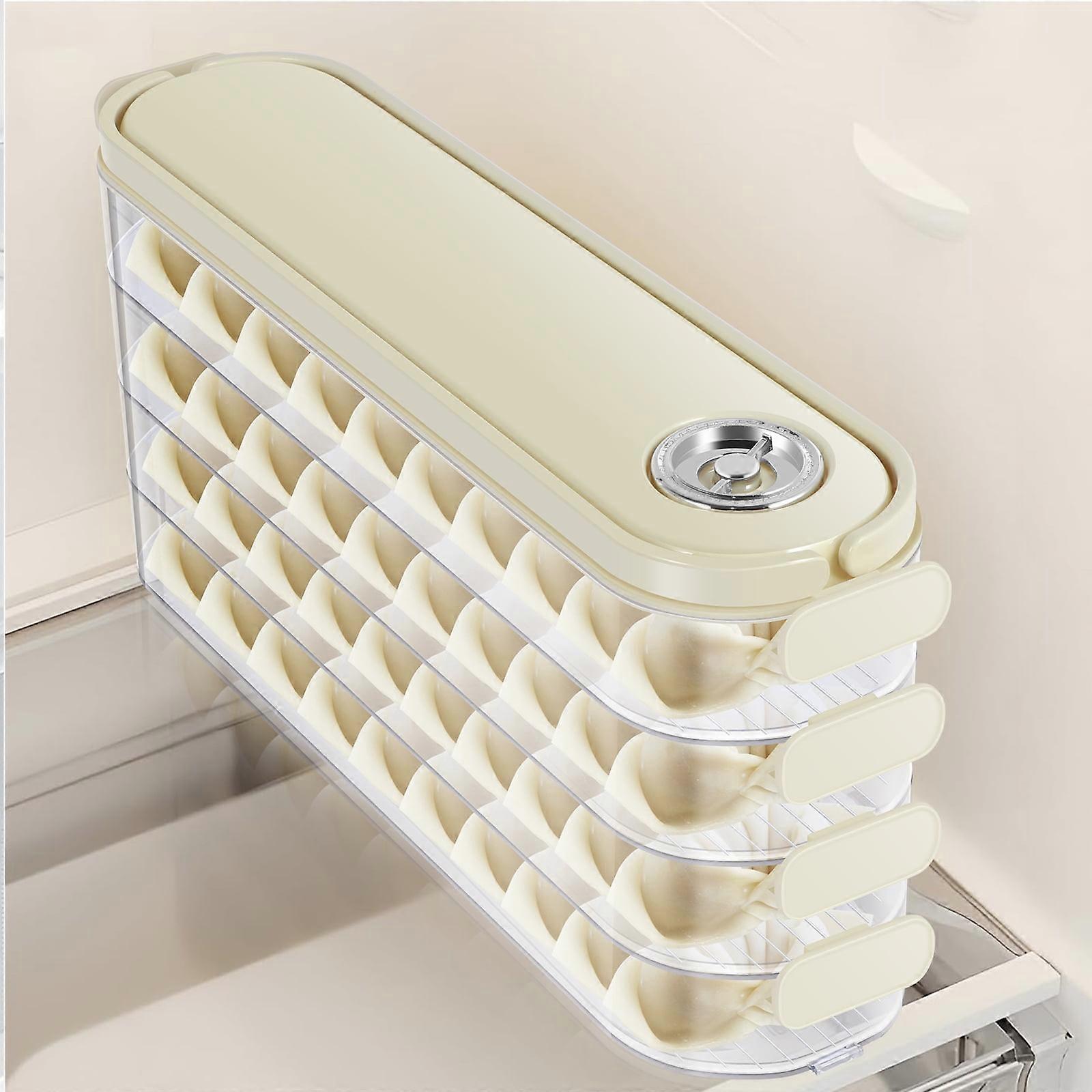 FUYGRCJ 4-Layer Dumpling Storage Box with Timing Function, Stackable & Clear, Compatible with Refrigerator, Sealing Lid, Handle