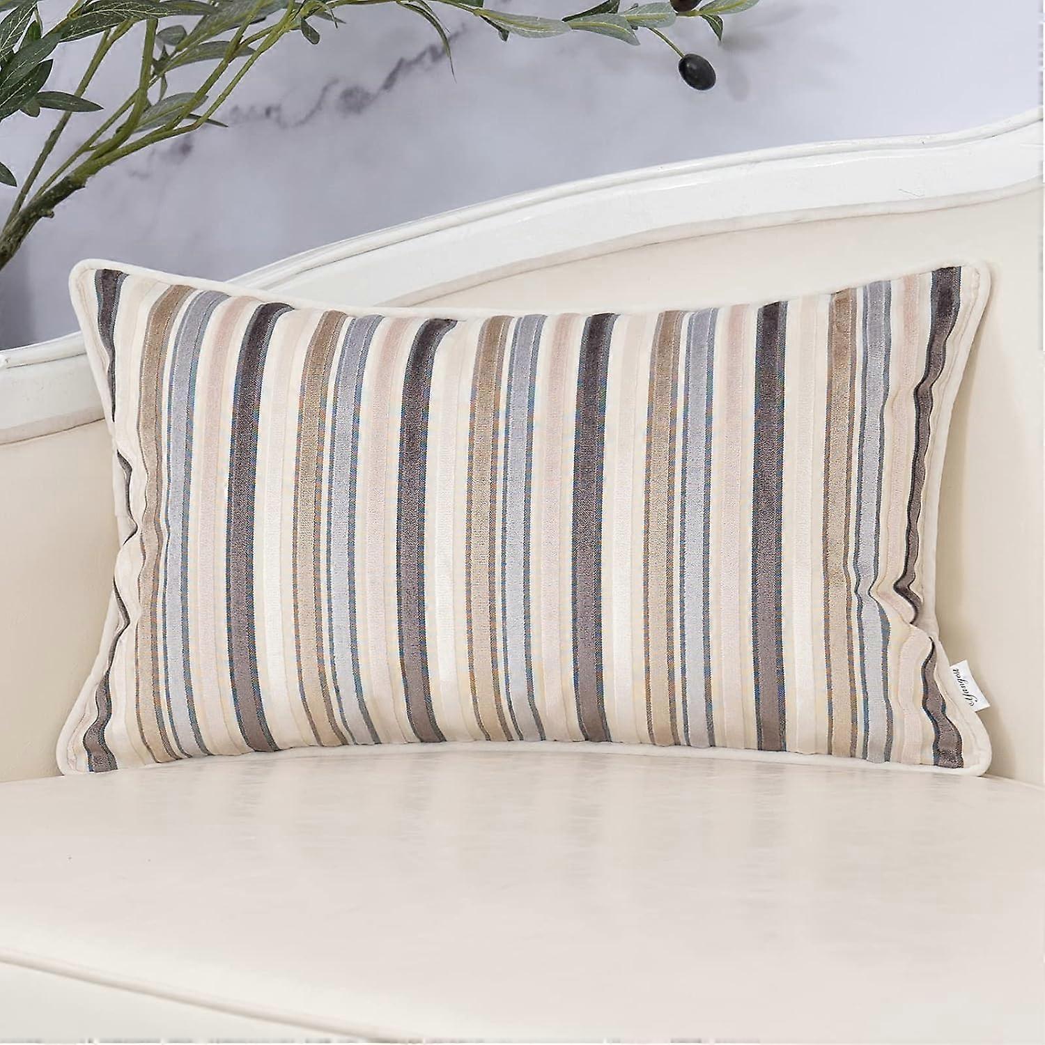 Striped Patchwork Throw Pillow Cover Leather Cushion Cover Zippered Pillowcase