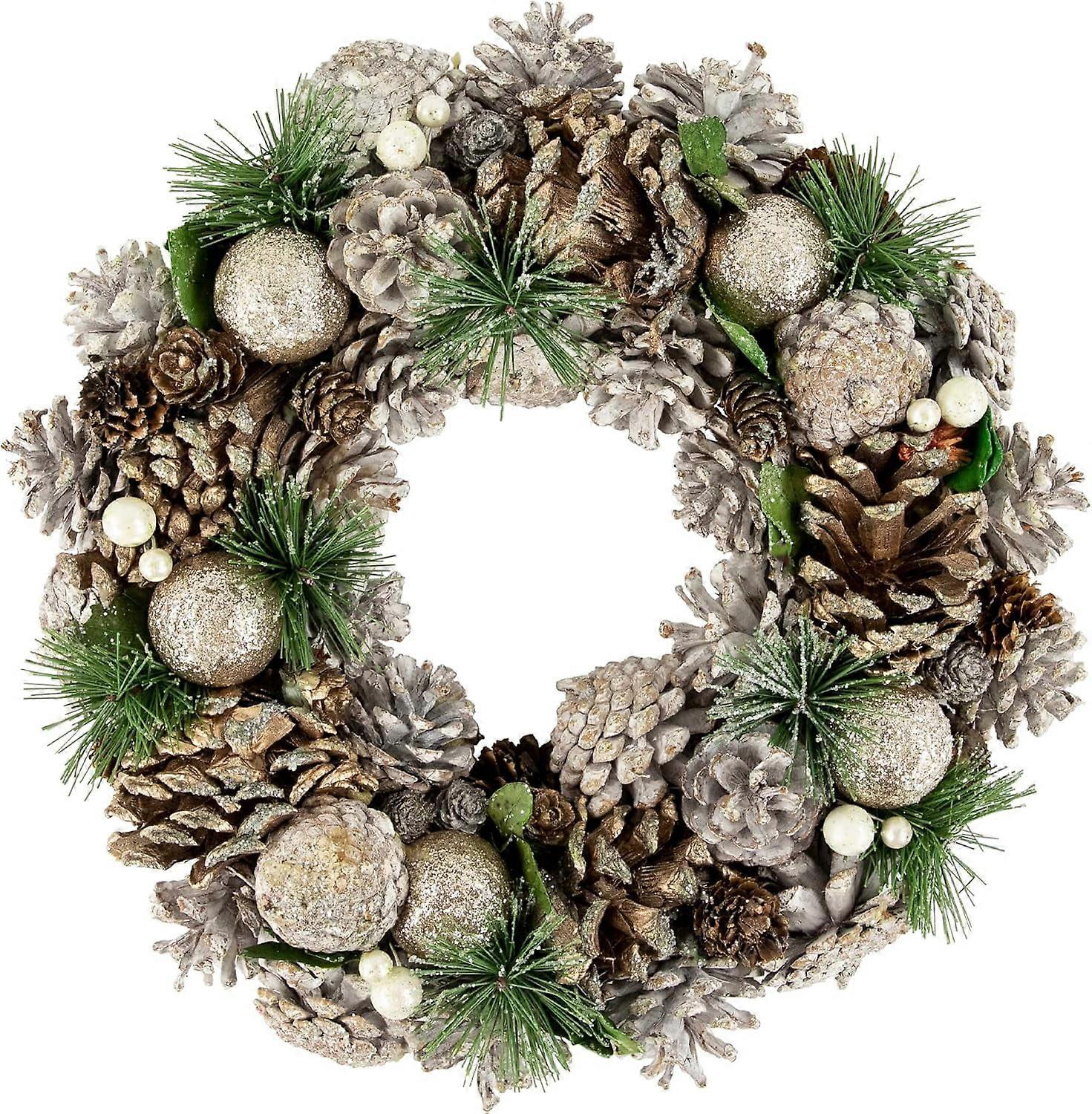 Green Pine Needle and Pinecone Artificial Christmas Wreath, 13.5-Inch, Unlit