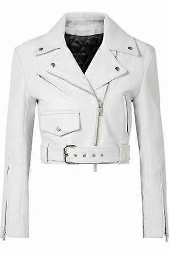 Handmade Women's Genuine Lambskin Leather Jacket Elegant White Biker Motorcycle