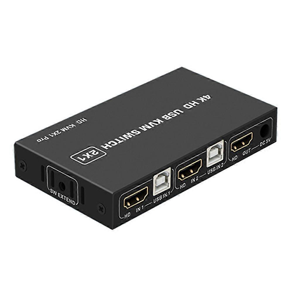 1. 2-in-1 Connectivity: The HDMI-compatible USB KVM switch is designed with two HDMI-compatible input ports and one output port, allowing you to effectively connect two computer hosts and one display. Both computers can share the same keyboard and mouse setup, keeping your workspace tidy and saving installation space. 2. One-Button Switching: Easily switch between computers with the HDMI-compatible KVM switch using a single button. The simple operation requires no complex procedures or the need to turn on both computers, making it practical and convenient for dual-computer work environments. 3. High-Definition Transmission: The USB switch selector supports 2 HDMI-Compatible input ports, 2 USB input ports, and 1 HDMI output port, delivering video resolutions up to 3840*2160. It supports LPCM2/5.1/7.1CH audio formats and Dolby 5.1CH, ensuring you enjoy the ultimate in HD video and audio transmission. 4. Wide Compatibility: The USB hub is compatible with HDMI-Compatible 1.4b, HDCP 1.4, and DVI, easily connecting to USB2.0 flash drives, printers, and more. It is ideal for business meetings, video conferences, control rooms, multimedia teaching, and other applications. 5. Versatile Use: The HDMI-compatible switch splitter is perfect for a variety of settings, including business meetings, video conferences, surveillance rooms, and multimedia classrooms, providing seamless and efficient connectivity for multiple devices. Type:KVM Switches Input:USB,HDMI-Compatible Output:USB Resolution:3840*2160 Music format:LPCM2/5.1/7.1CH, Dolby 5.1CH Product size:110.00x60.00x20.00mm/4.33x2.36x0.79inch Note:Due to different factory batches, if there is any difference in the appearance of the words, it does not affect the use of the product. Colour:Black Material:Iron Shell Package Contents: 1 x HDMI-Com