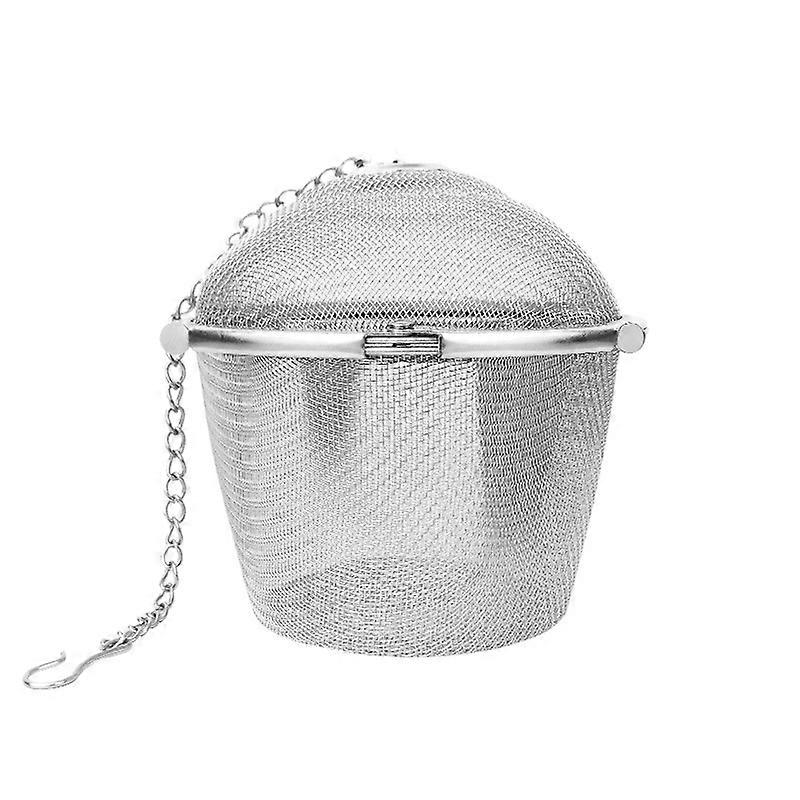 Reusable Coffee Tea Infusing Mesh Brewing Basket Stainless Steel Tea Strainer Mesh Ball Herbal Spice Filter Soup Infuser with Chain(1pc, silver)