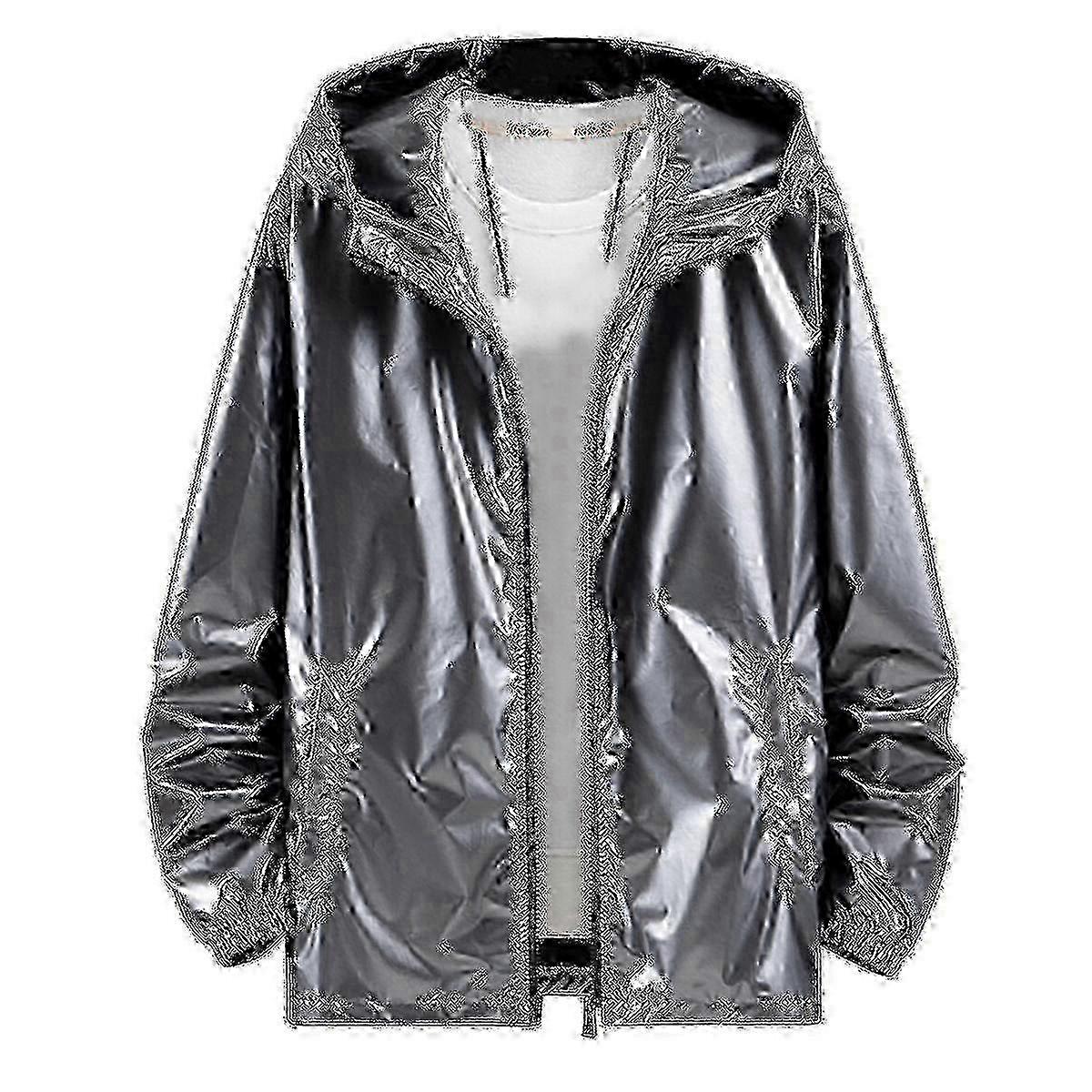 Mens Hooded Jacket, Metallic Hooded Windbreaker with Zipper Shiny Waterproof