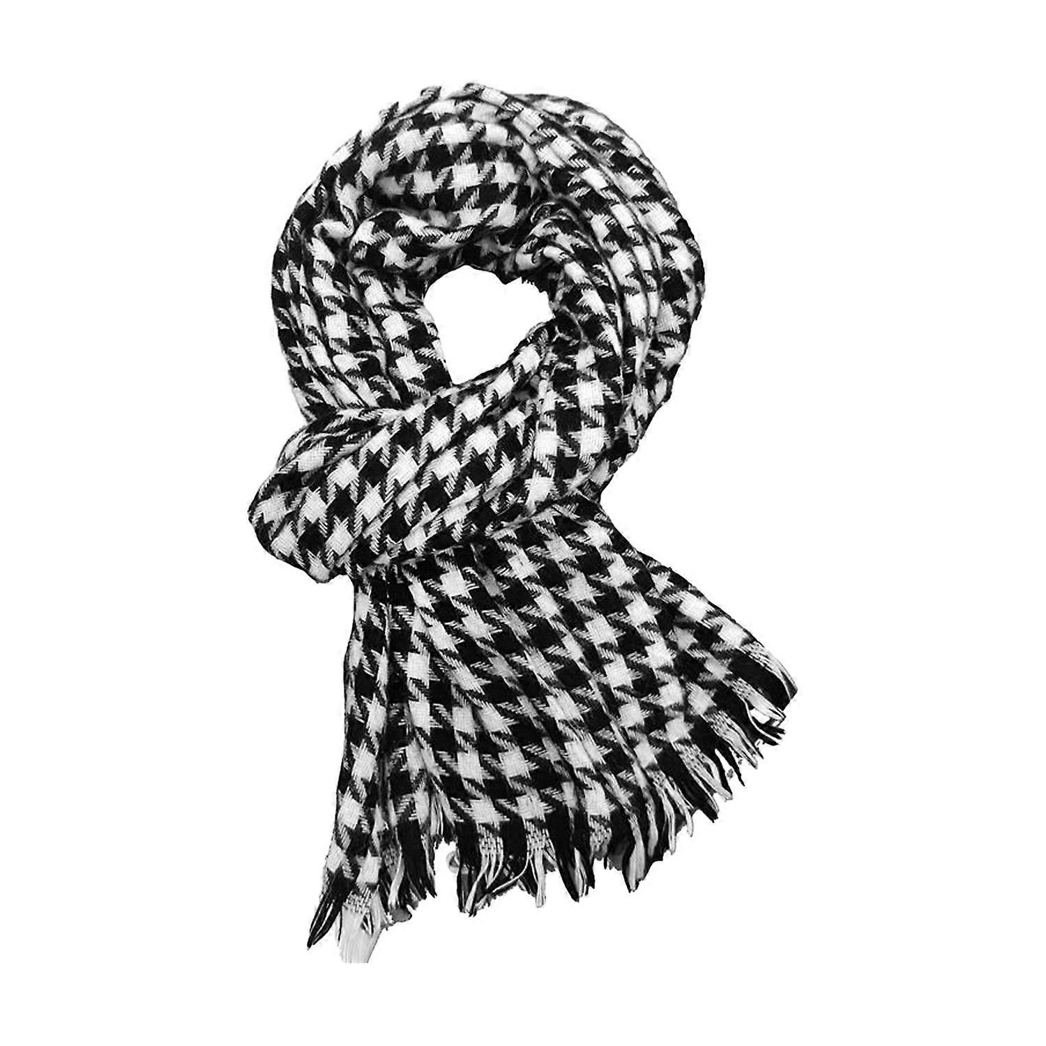 Autumn Winter Scarf Women Black White Plaid Print Scarf Tassel Trim Thick Warm Shawl Versatile Long