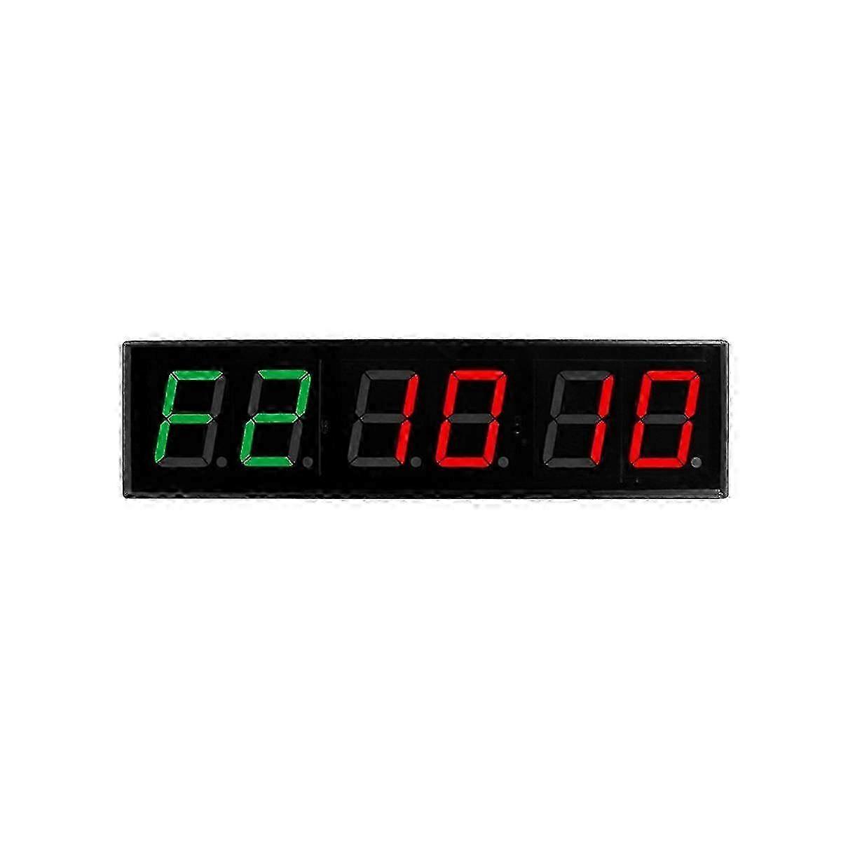 Screen Gym Timer 1.5 Inch Digits Count Down/Up Timer Boxing Cycle Interval Clock Stopwatch Fitness Training EU Plug 1. Stopwatch, support 99 minutes 59 seconds 99 milliseconds timing; 2. Timing, support 99 minutes and 59 seconds timing. You can set the time to stop when counting up, start counting from 0, and stop automatically at the set time. 3. Countdown, support 99 minutes 59 seconds countdown. 4. Clock function. Support 12/24 hour switching display. H1 stands for 24-hour display, and H2 stands for 12-hour display. Different display modes can be switched by remote control; 5. Alternate timing. This function is also the main function of this clock. Users can use it to set the timing of daily fitness activities. Alternately count training time and rest time. The training time is represented by F, and the rest time is represented by C. C C is the number of repetitions, and each group of timing can be on different shortcut keys. key: 8 groups of exercise time F1-F8, interval time C1-C8, exercise time 20 seconds, interval 10 seconds, this key is a fixed program, press this key, click to start FGB key: Press FGB once to enter F1 mode, run for 5 minutes, with an interval of 1 minute, and run 5 times; press FGB twice continuously, enter F2 mode, run for 5 minutes, and run 3 times with an interval of 1 minute EMOM key: This key is a fixed program key, which is a one-minute countdown, click to run and count down from 60 seconds. 10Sec button: Press this button once for 10 seconds of preparation time to cancel the 10 seconds of preparation time, and enter the timing mode directly when the timing starts The display brightness is adjustable, five levels of brightness 6-digit display: 2 green + 4 red Installation :placing/hanging Visual range:Less than 20M Digits height:40mm Power supply mode:USB plug-in Occasion:fitness center/boxing center/match timing/training Plug Type: Plug,it applies to Indonesia, Germany, France, , Italy and so on. Voltage:AC220V Colour:Black Material:aluminum alloy Package Contents: 1 * Clock 1 * USB cable 1 * Remote control 1 * English instruction manual Only the above package content, other products are not included. Note: Light reflection and different displays may cause the color of the item in the picture a little different from the real thing. The measurement allowed error is +/- 1-3cm. Note: Due to the light and screen setting difference, the item's color may be slightly different from the pictures. Please allow slight dimension difference due to different manual measurement. Sold by-Dadangjia