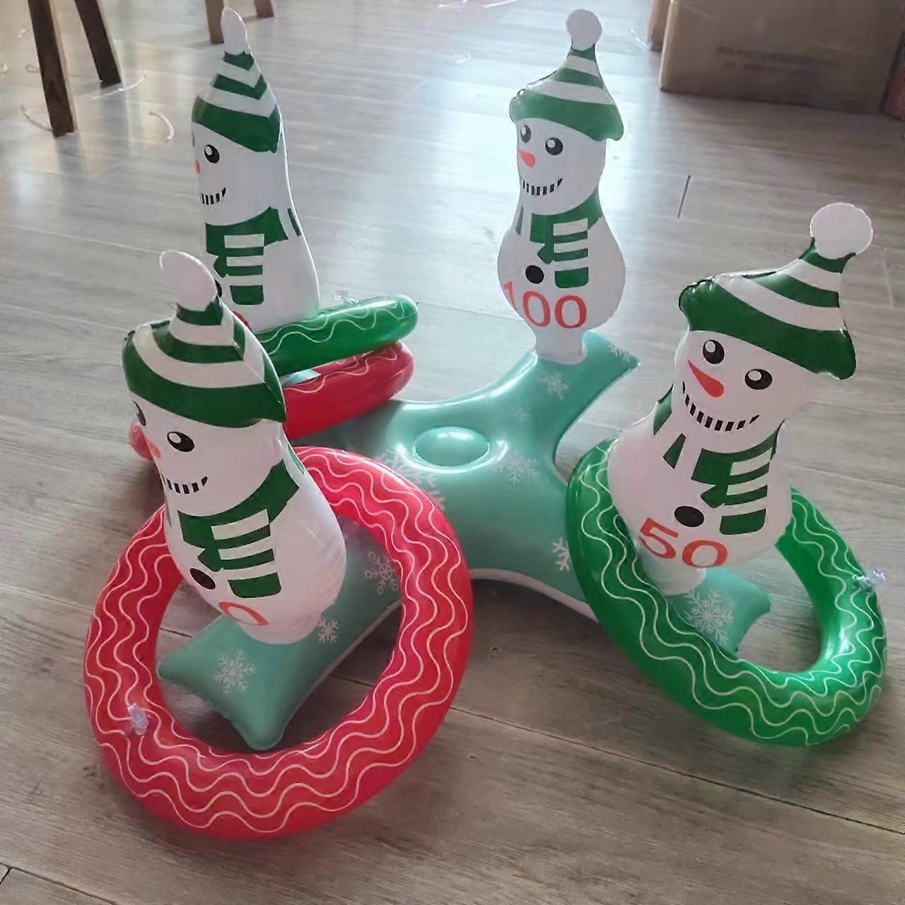 Christmas Party Ring Toss Game, Christmas Inflatable Snowman with 6 Rings and 1 Hand Pump, Fun Ring Toss Game