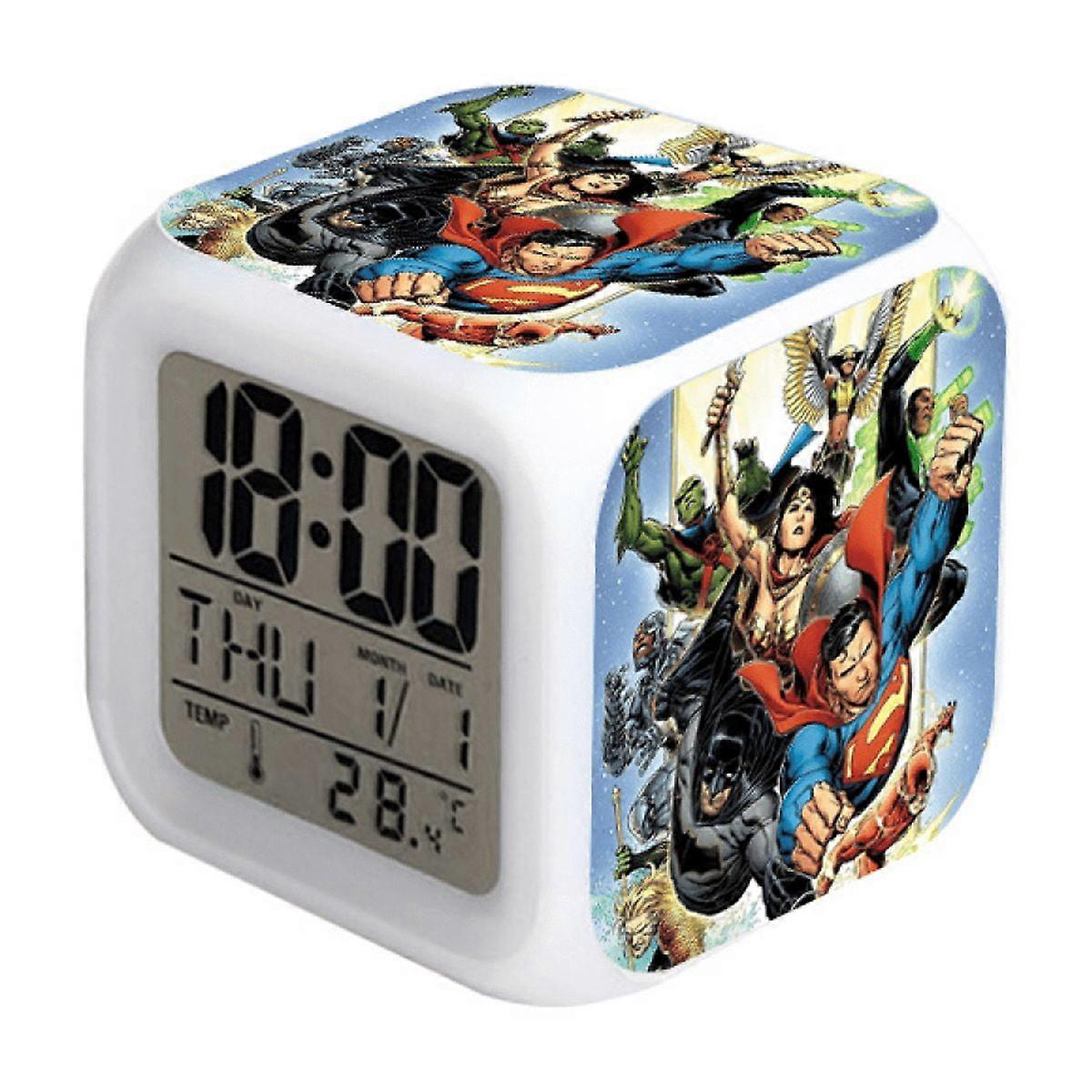 LED Alarm Clock with Super Hero Pattern - Glowing Digital Desk Clock, Compatible with HTNL#450 - Colorful Gift for Kids & Adults