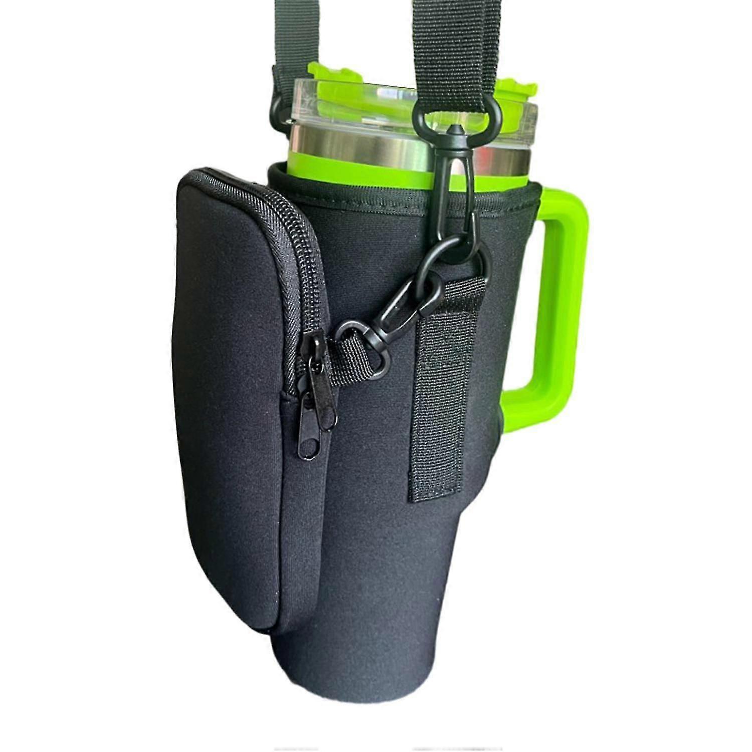 Multifunctional Water Bottle Bag with Zipper Storage Carry Adjustable Shoulder Strap Detachable Mug